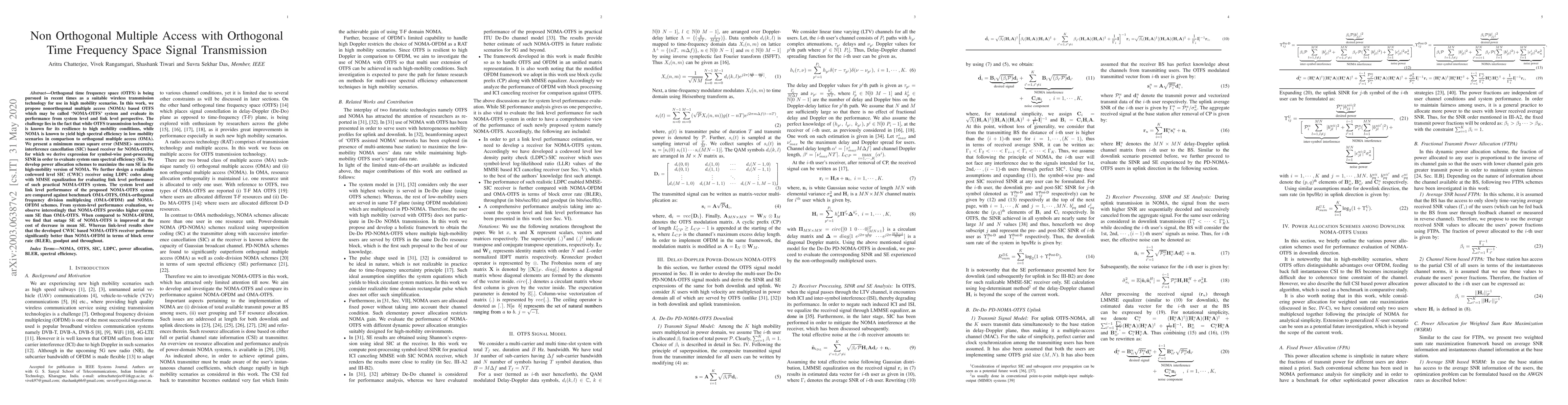 Orthogonal time frequency space (OTFS) is being pursued in recent times as a suitable wireless transmission technology for use in high mobility scenarios. In this work, we propose nonorthogonal multiple acess (NOMA) based OTFS which may be called NOMA-OTFS system and evaluate its performance from system level and link level perspective. The challenge lies in the fact that while OTFS transmission technology is known for its resilience to high mobility conditions, while NOMA is known to yield high spectral efficiency in low mobility scenarios in comparison to orthogonal multiple access (OMA). We present a minimum mean square error (MMSE)- successive interference cancellation (SIC) based receiver for NOMA-OTFS, for which we derive expression for symbol-wise post-processing SINR in order to evaluate system sum spectral efficiency (SE). We develop power allocation schemes to maximize the sum SE in the high-mobility version of NOMA. We further design a realizable codeword level SIC (CWIC) receiver using LDPC codes along with MMSE equalization for evaluating link level performance of such practical NOMA-OTFS system. The system level and link level performance of the proposed NOMA-OTFS system are compared against benchmark OMA-OTFS, OMA-orthogonal frequency division multiplexing (OMA-OFDM) and NOMA-OFDM schemes. From system-level performance evaluation, we observe interestingly that NOMA-OTFS provides higher sum SE than OMA-OTFS. When compared to NOMA-OFDM, we find that outage SE of NOMA-OTFS is improved at the cost of decrease in mean SE. Whereas link-level results show that the developed CWIC based NOMA-OTFS receiver performs significantly better than NOMA-OFDM in terms of block error rate (BLER), goodput and throughput.