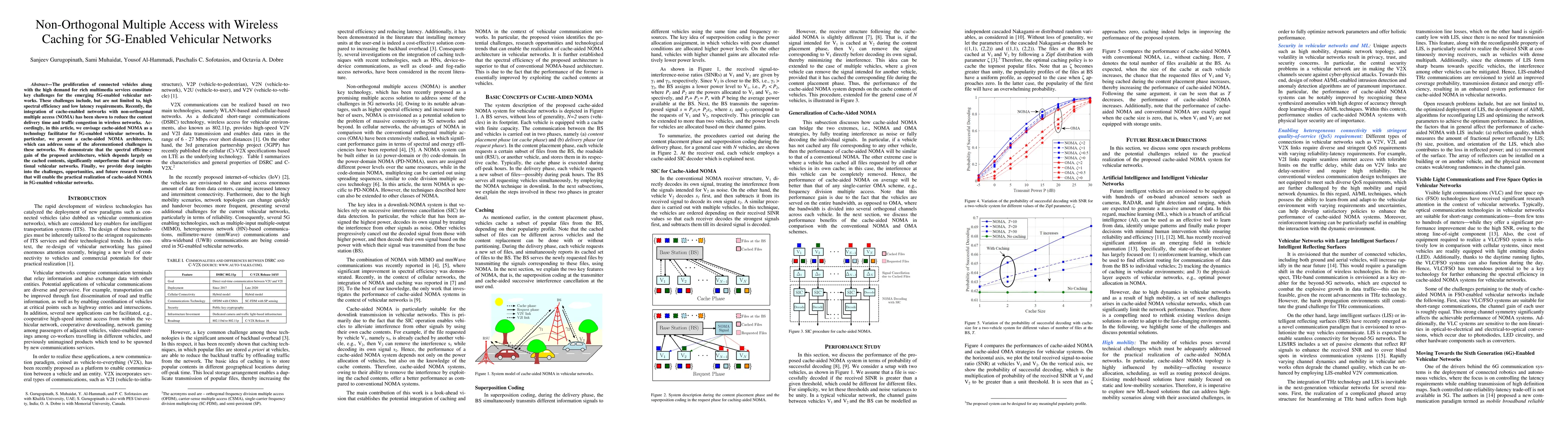 This paper proposes a cache-aided non-orthogonal multiple access (NOMA) architecture for 5G-enabled vehicular networks to enhance spectral efficiency and reduce latency. The study demonstrates significant performance gains over conventional networks, highlighting future research directions for practical implementation.
