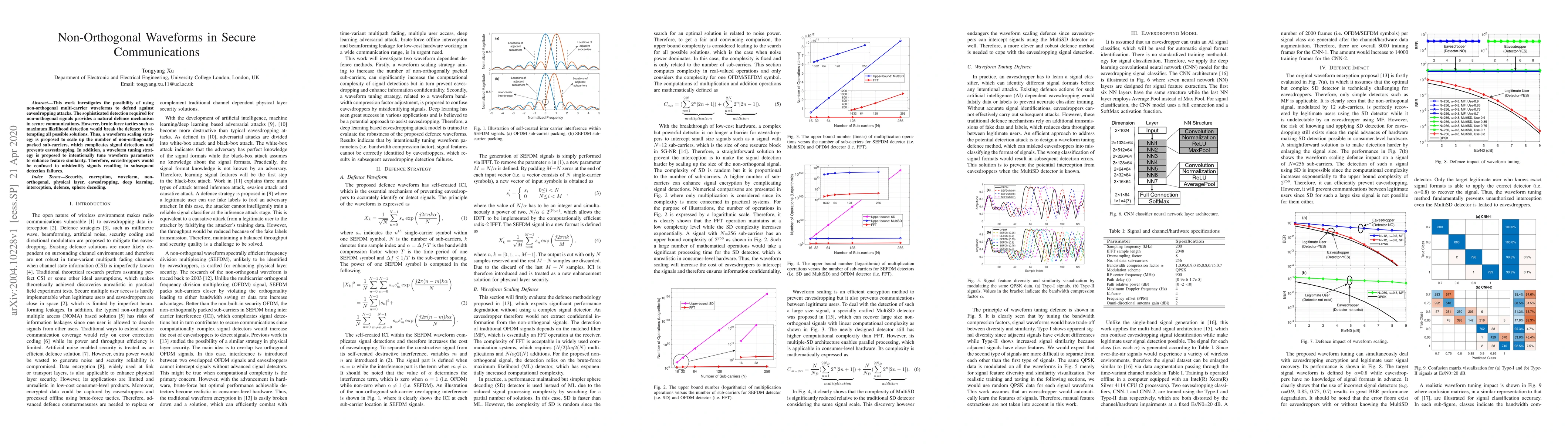 This work investigates the possibility of using non-orthogonal multi-carrier waveforms to defend against eavesdropping attacks. The sophisticated detection required for non-orthogonal signals provides a natural defence mechanism in secure communications. However, brute-force tactics such as maximum likelihood detection would break the defence by attempting all possible solutions. Thus, a waveform scaling strategy is proposed to scale up the number of non-orthogonally packed sub-carriers, which complicates signal detections and prevents eavesdropping. In addition, a waveform tuning strategy is proposed to intentionally tune waveform parameters to enhance feature similarity. Therefore, eavesdroppers would be confused to misidentify signals resulting in subsequent detection failures.