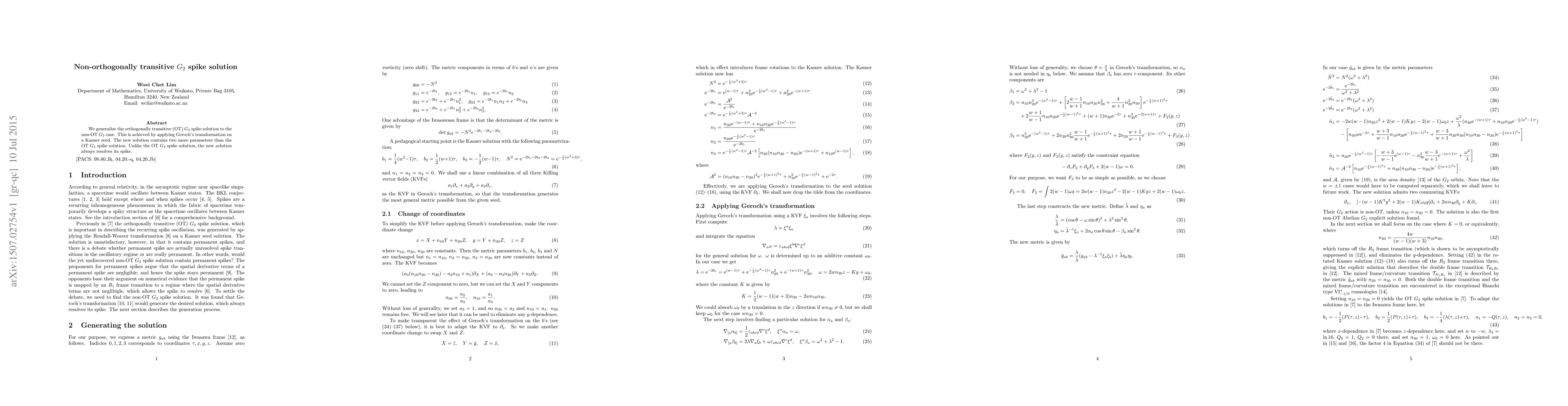 This paper generalizes the orthogonally transitive $G_2$ spike solution to a non-orthogonally transitive case using Geroch's transformation on a Kasner seed, introducing two additional parameters and resolving the spike unlike the original solution.