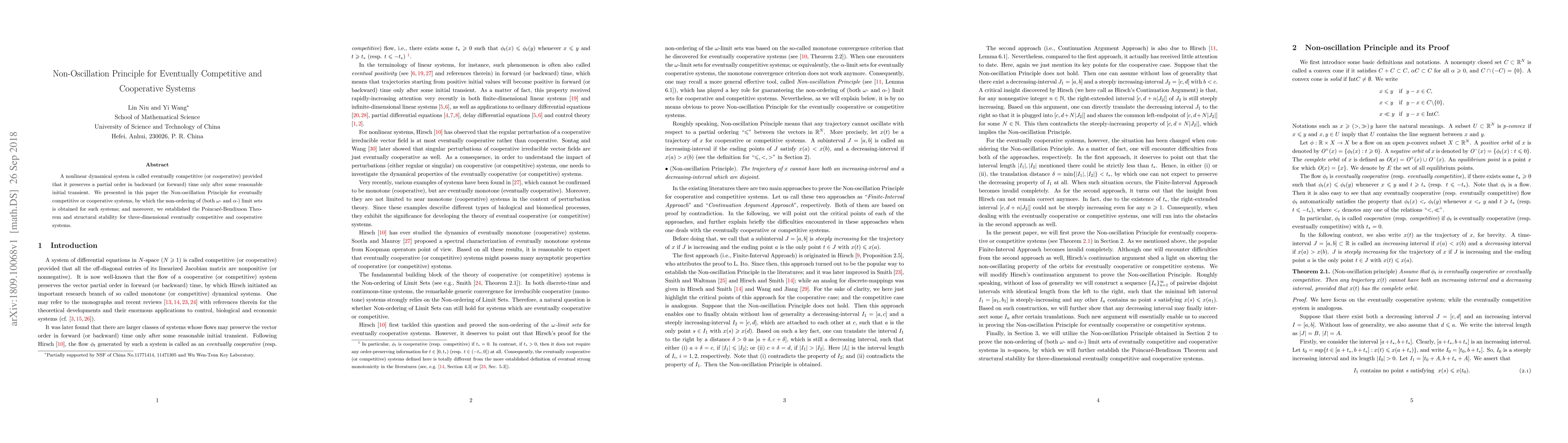 This paper introduces the Non-oscillation Principle for eventually competitive or cooperative nonlinear dynamical systems, demonstrating that their limit sets do not preserve order. It also establishes the Poincaré-Bendixson Theorem and structural stability for three-dimensional systems of this type.
