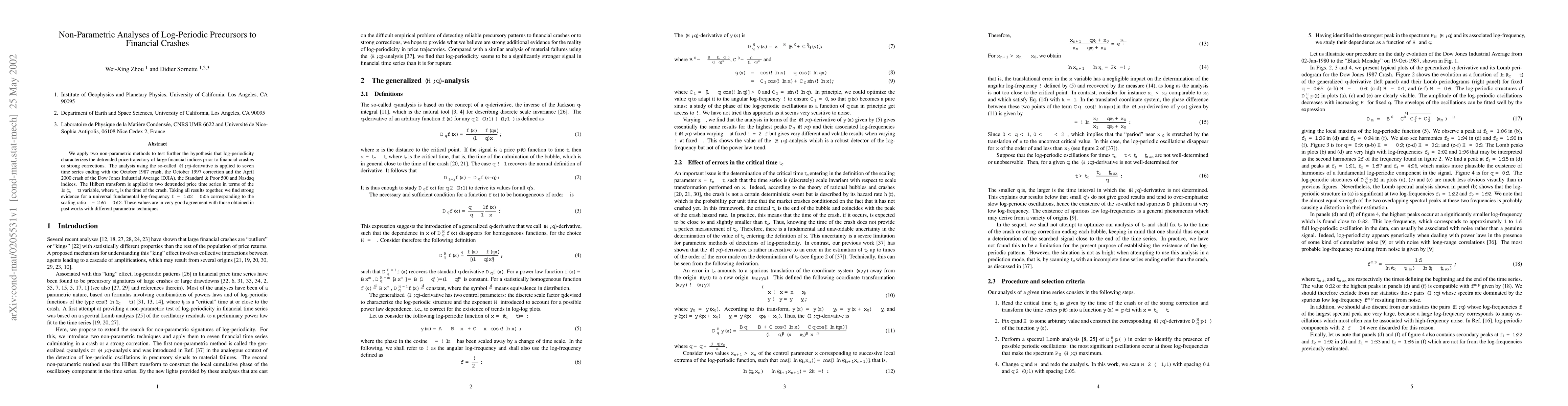 Researchers used non-parametric methods to analyze log-periodicity in financial crashes, finding a universal fundamental log-frequency of $f = 1.02$ with a scaling ratio of $rac{2}{f}$.