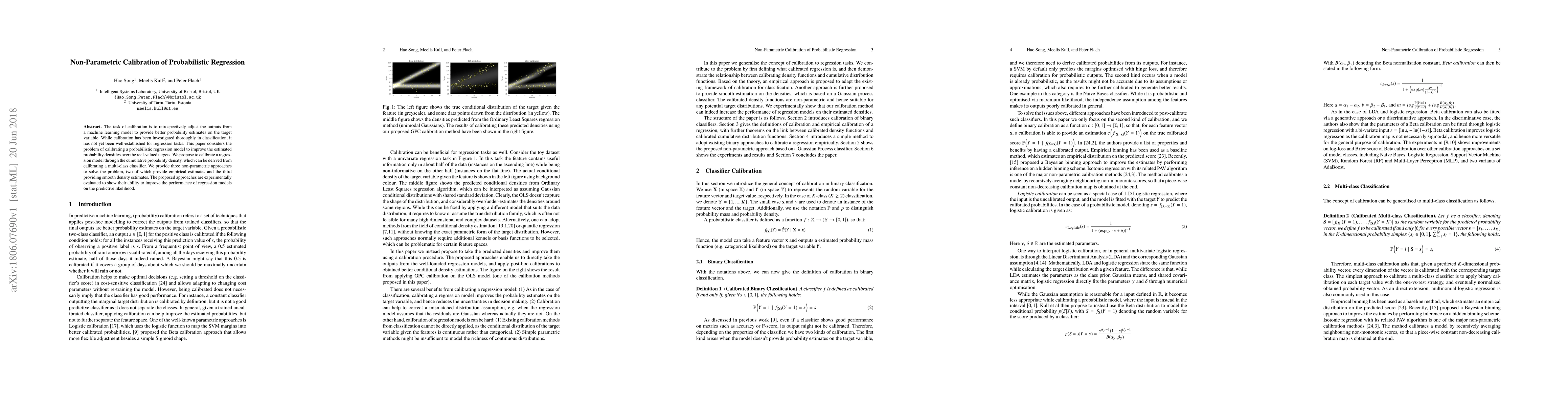 This paper proposes non-parametric methods for calibrating probabilistic regression models to enhance the accuracy of estimated probability densities for real-valued targets. The authors introduce three non-parametric approaches, two empirical and one smooth, and demonstrate their effectiveness through experimental evaluation.