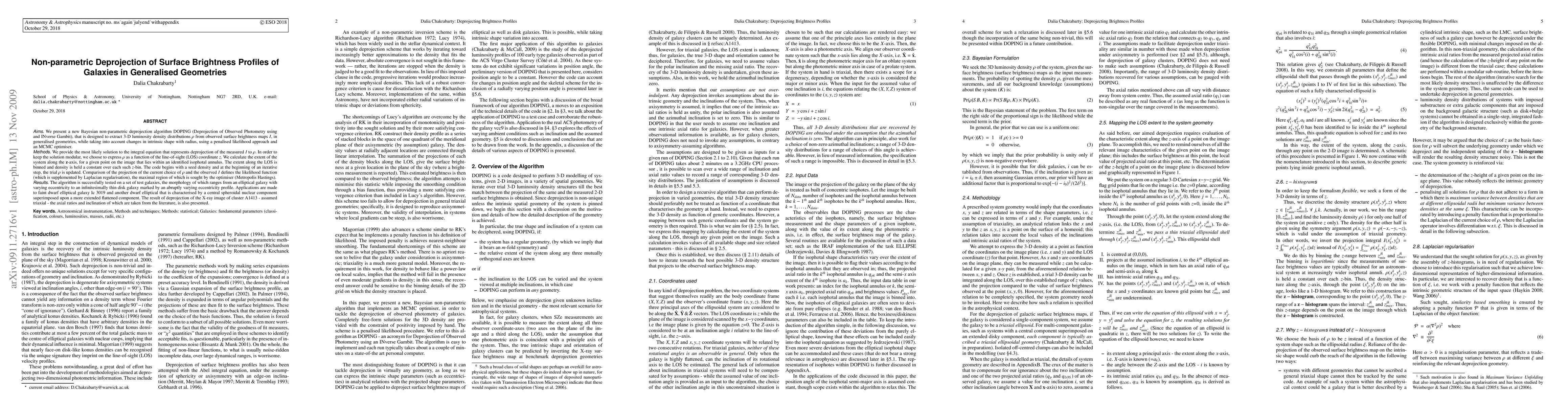 We present a new Bayesian non-parametric deprojection algorithm DOPING (Deprojection of Observed Photometry using and INverse Gambit), that is designed to extract 3-D luminosity density distributions $\rho$ from observed surface brightness maps $I$, in generalised geometries, while taking into account changes in intrinsic shape with radius, using a penalised likelihood approach and an MCMC optimiser. We provide the most likely solution to the integral equation that represents deprojection of the measured $I$ to $\rho$. In order to keep the solution modular, we choose to express $\rho$ as a function of the line-of-sight (LOS) coordinate $z$. We calculate the extent of the system along the ${\bf z}$-axis, for a given point on the image that lies within an identified isophotal annulus. The extent along the LOS is binned and density is held a constant over each such $z$-bin. The code begins with a seed density and at the beginning of an iterative step, the trial $\rho$ is updated. Comparison of the projection of the current choice of $\rho$ and the observed $I$ defines the likelihood function (which is supplemented by Laplacian regularisation), the maximal region of which is sought by the optimiser (Metropolis Hastings). The algorithm is successfully tested on a set of test galaxies, the morphology of which ranges from an elliptical galaxy with varying eccentricity to an infinitesimally thin disk galaxy marked by an abruptly varying eccentricity profile. Applications are made to faint dwarf elliptical galaxy Ic~3019 and another dwarf elliptical that is characterised by a central spheroidal nuclear component superimposed upon a more extended flattened component. The result of deprojection of the X-ray image of triaxial cluster A1413 is also presented.