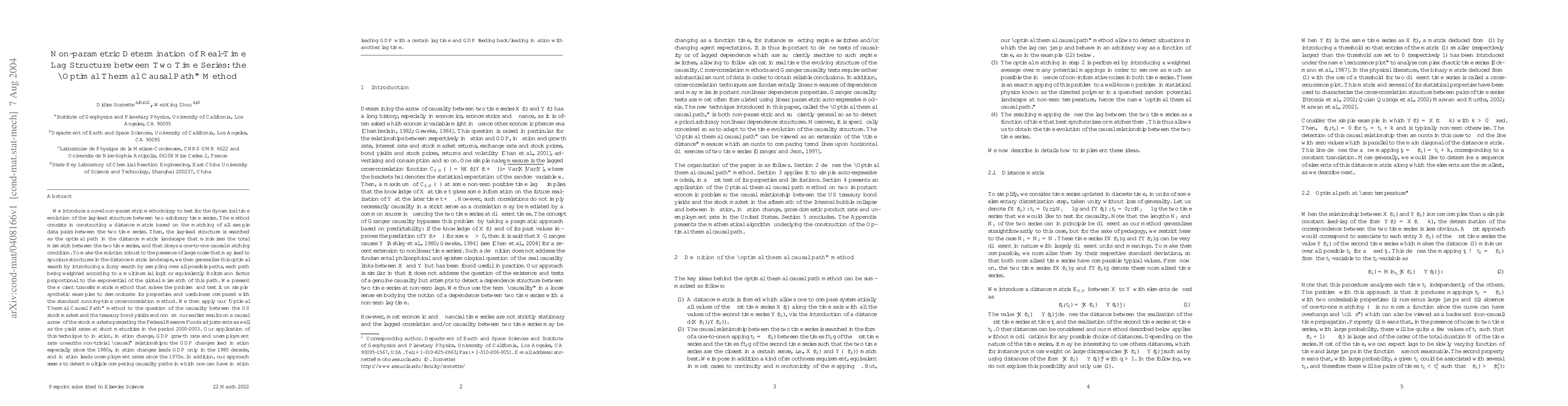 This paper introduces a new non-parametric method, the 'Optimal Thermal Causal Path', to determine real-time lag structure between any two time series. It constructs a distance matrix from data pairings, finds the optimal path minimizing mismatch under causal conditions, and employs a fuzzy search to mitigate noise effects. The method is tested on synthetic examples and compared to cross-correlation, demonstrating its efficiency and accuracy.