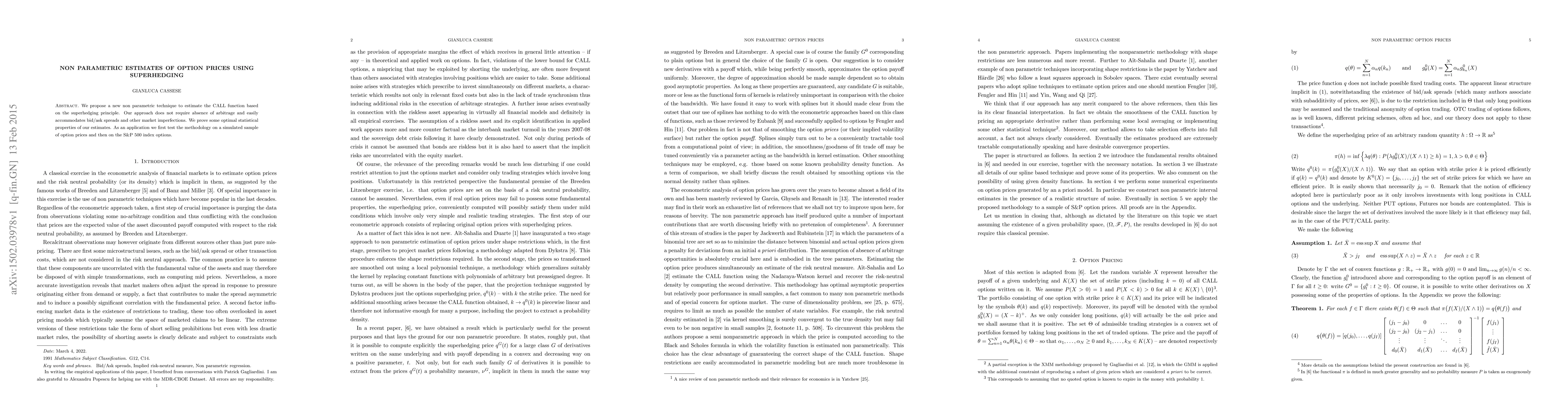 This paper proposes a non-parametric method for estimating call option prices based on the superhedging principle, which does not require the absence of arbitrage and can handle market imperfections. The authors demonstrate the optimal statistical properties of their estimates and apply the methodology to both simulated and S&P 500 index options data.