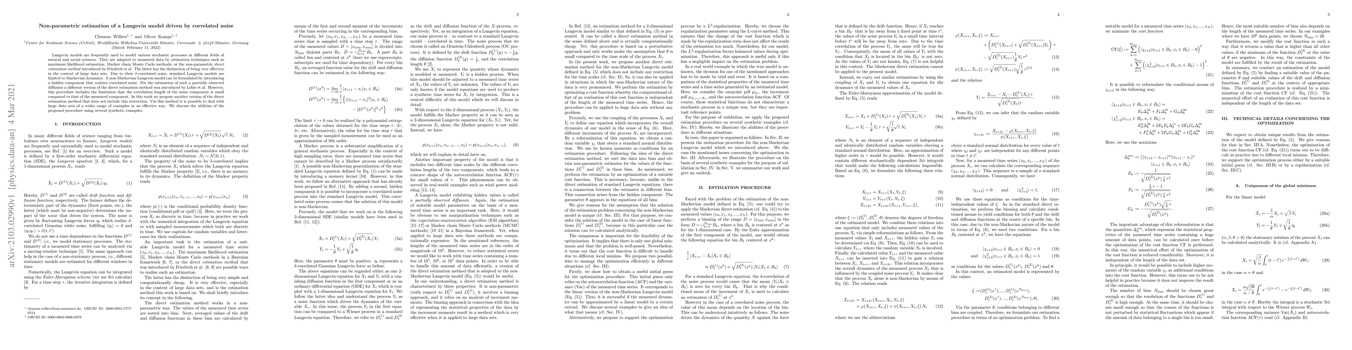 Langevin models are frequently used to model various stochastic processes in different fields of natural and social sciences. They are adapted to measured data by estimation techniques such as maximum likelihood estimation, Markov chain Monte Carlo methods, or the non-parametric direct estimation method introduced by Friedrich et al. The latter has the distinction of being very effective in the context of large data sets. Due to their $\delta$-correlated noise, standard Langevin models are limited to Markovian dynamics. A non-Markovian Langevin model can be formulated by introducing a hidden component that realizes correlated noise. For the estimation of such a partially observed diffusion a different version of the direct estimation method was introduced by Lehle et al. However, this procedure includes the limitation that the correlation length of the noise component is small compared to that of the measured component. In this work we propose another version of the direct estimation method that does not include this restriction. Via this method it is possible to deal with large data sets of a wider range of examples in an effective way. We discuss the abilities of the proposed procedure using several synthetic examples.