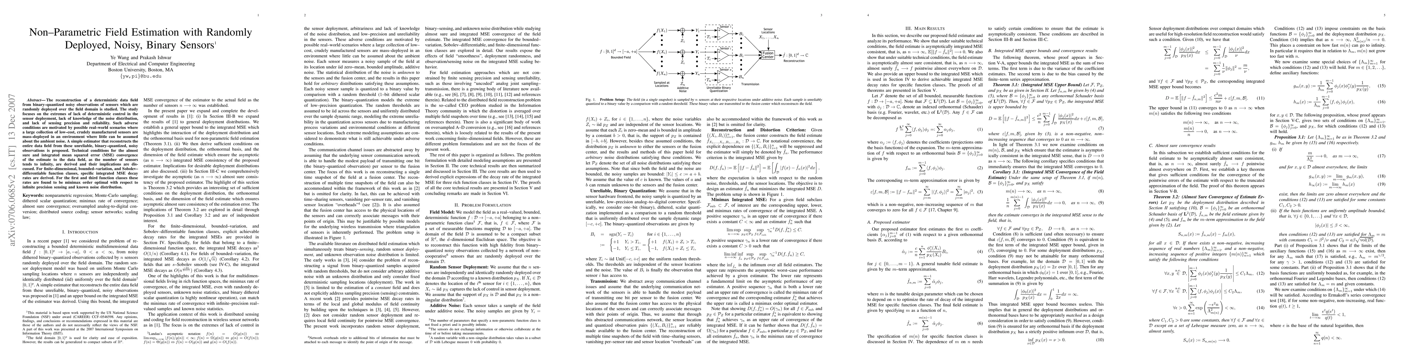 A new method for estimating a data field from noisy, binary-quantized sensor observations in an uncertain environment is proposed, with the potential to achieve near-optimal performance even without precise sensing or knowledge of noise distributions.