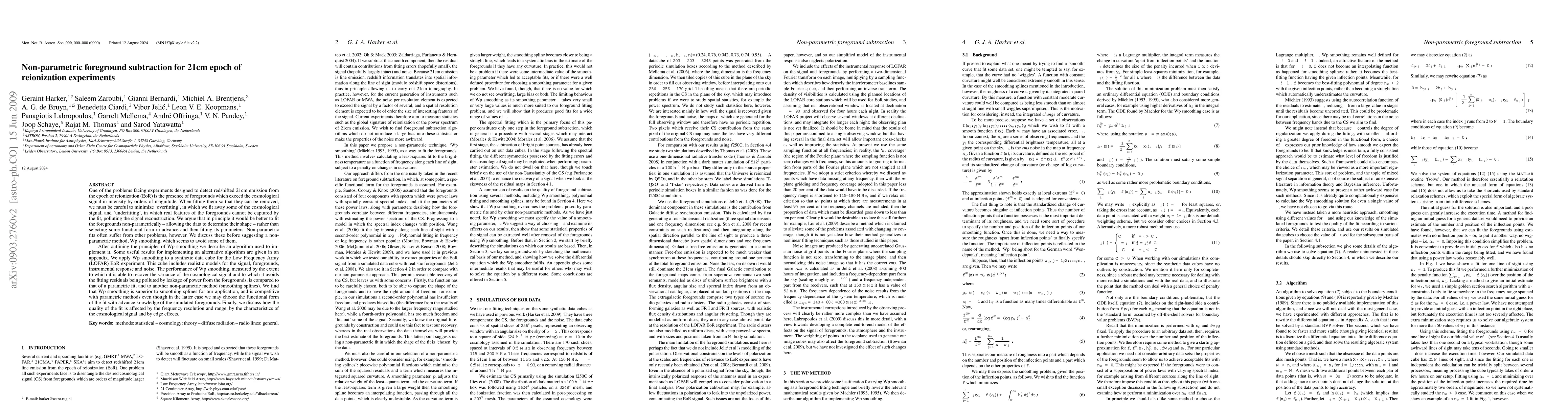 An obstacle to the detection of redshifted 21cm emission from the epoch of reionization (EoR) is the presence of foregrounds which exceed the cosmological signal in intensity by orders of magnitude. We argue that in principle it would be better to fit the foregrounds non-parametrically - allowing the data to determine their shape - rather than selecting some functional form in advance and then fitting its parameters. Non-parametric fits often suffer from other problems, however. We discuss these before suggesting a non-parametric method, Wp smoothing, which seems to avoid some of them. After outlining the principles of Wp smoothing we describe an algorithm used to implement it. We then apply Wp smoothing to a synthetic data cube for the LOFAR EoR experiment. The performance of Wp smoothing, measured by the extent to which it is able to recover the variance of the cosmological signal and to which it avoids leakage of power from the foregrounds, is compared to that of a parametric fit, and to another non-parametric method (smoothing splines). We find that Wp smoothing is superior to smoothing splines for our application, and is competitive with parametric methods even though in the latter case we may choose the functional form of the fit with advance knowledge of the simulated foregrounds. Finally, we discuss how the quality of the fit is affected by the frequency resolution and range, by the characteristics of the cosmological signal and by edge effects.