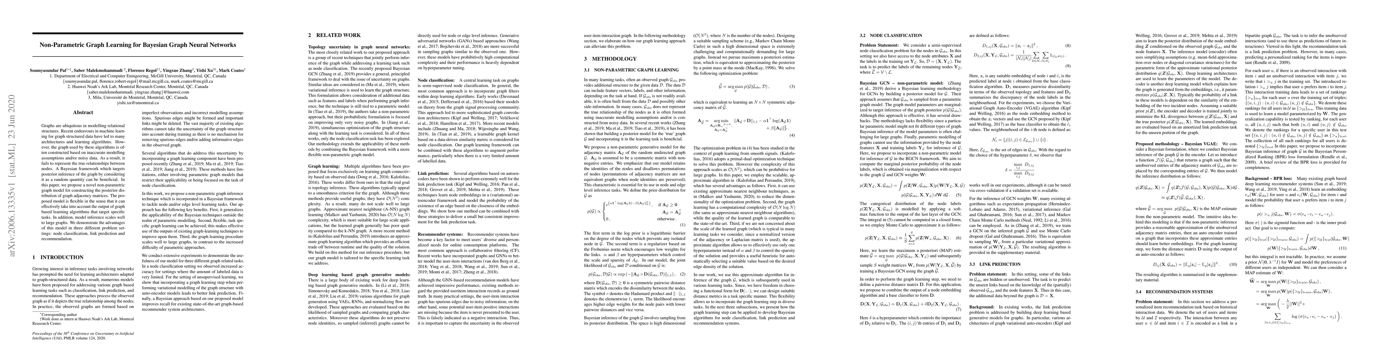 This paper introduces a non-parametric graph model for Bayesian Graph Neural Networks that infers the posterior distribution of graph adjacency matrices, offering flexibility and scalability for large graphs. The model demonstrates improved performance in node classification, link prediction, and recommendation tasks.