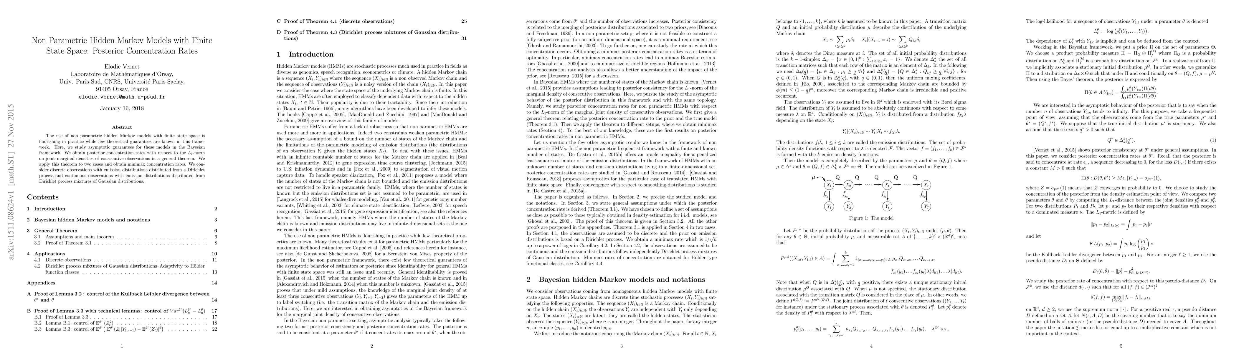 This paper investigates asymptotic guarantees for non-parametric hidden Markov models with finite state space, providing posterior concentration rates in the Bayesian framework. It applies the general theorem to discrete and continuous observation cases, yielding minimax concentration rates for both.