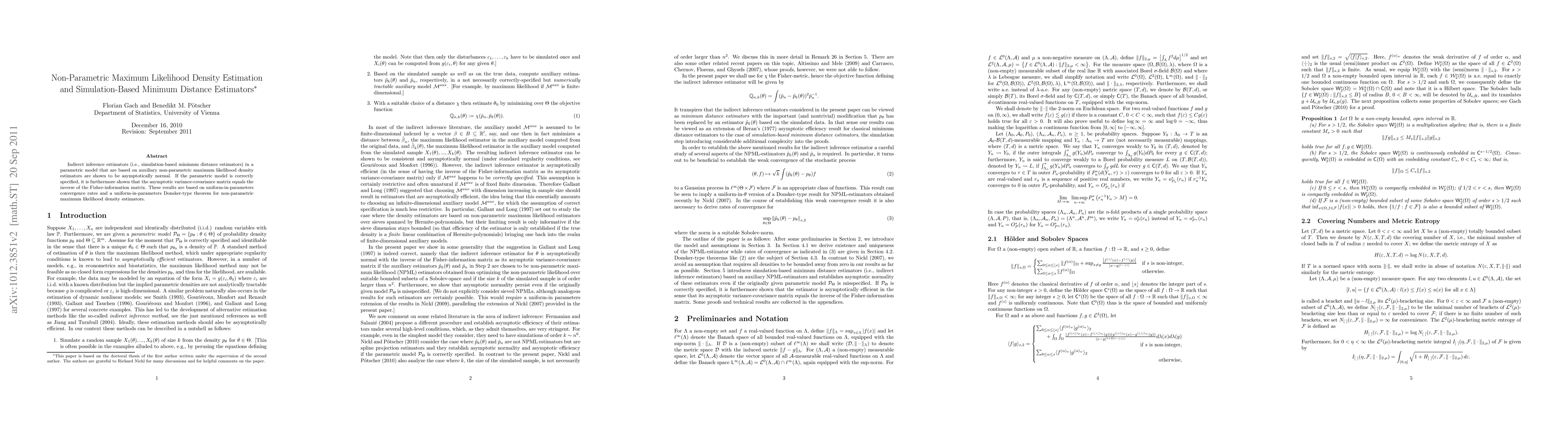 Indirect inference estimators (i.e., simulation-based minimum distance estimators) in a parametric model that are based on auxiliary non-parametric maximum likelihood density estimators are shown to be asymptotically normal. If the parametric model is correctly specified, it is furthermore shown that the asymptotic variance-covariance matrix equals the inverse of the Fisher-information matrix. These results are based on uniform-in-parameters convergence rates and a uniform-in-parameters Donsker-type theorem for non-parametric maximum likelihood density estimators.