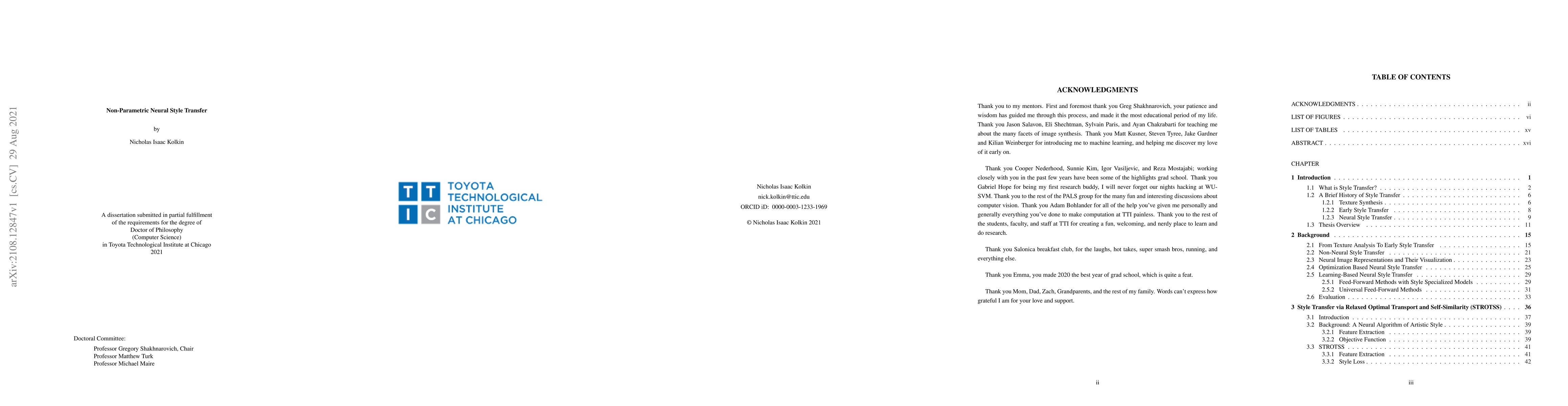 It seems easy to imagine a photograph of the Eiffel Tower painted in the style of Vincent van Gogh's 'The Starry Night', but upon introspection it is difficult to precisely define what this would entail. What visual elements must an image contain to represent the 'content' of the Eiffel Tower? What visual elements of 'The Starry Night' are caused by van Gogh's 'style' rather than his decision to depict a village under the night sky? Precisely defining 'content' and 'style' is a central challenge of designing algorithms for artistic style transfer, algorithms which can recreate photographs using an artwork's style. My efforts defining these terms, and designing style transfer algorithms themselves, are the focus of this thesis. I will begin by proposing novel definitions of style and content based on optimal transport and self-similarity, and demonstrating how a style transfer algorithm based on these definitions generates outputs with improved visual quality. Then I will describe how the traditional texture-based definition of style can be expanded to include elements of geometry and proportion by jointly optimizing a keypoint-guided deformation field alongside the stylized output's pixels. Finally I will describe a framework inspired by both modern neural style transfer algorithms and traditional patch-based synthesis approaches which is fast, general, and offers state-of-the-art visual quality.