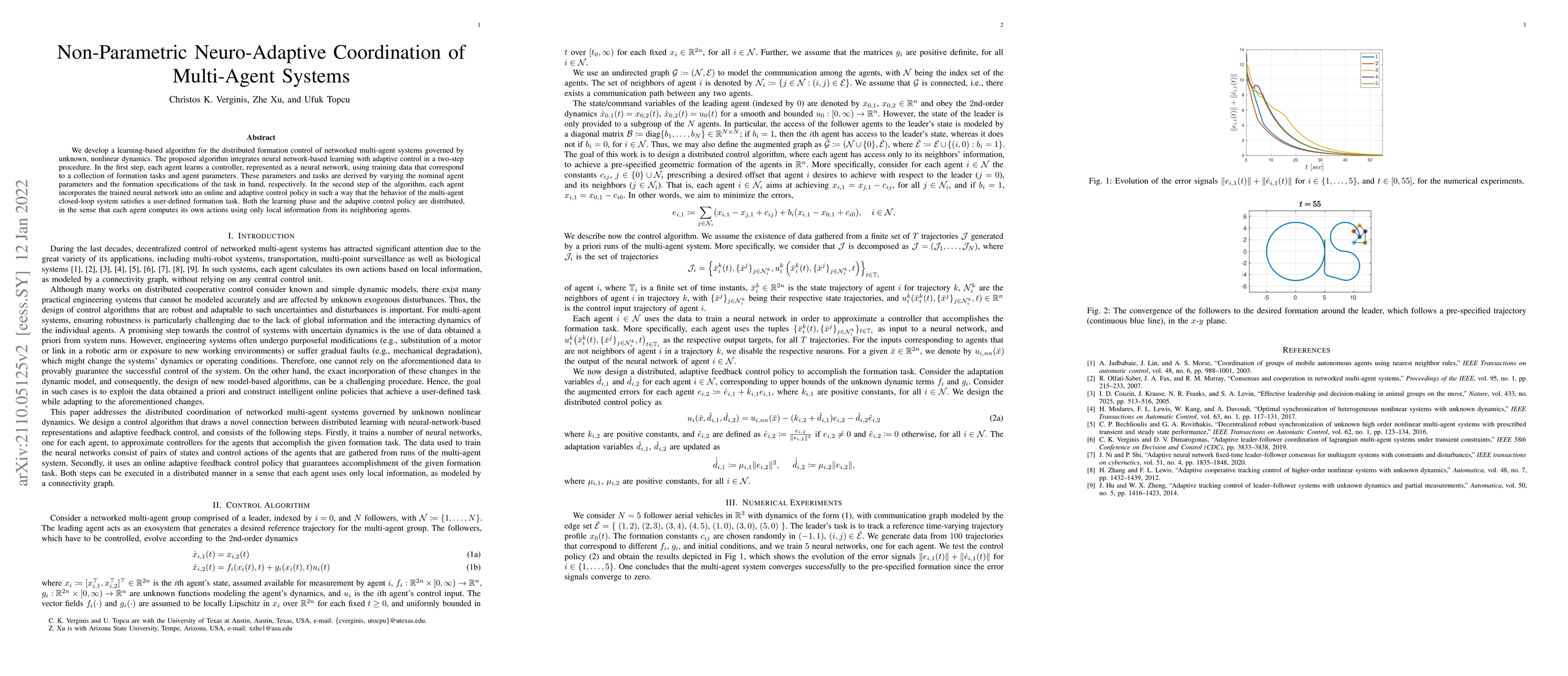 This paper proposes a non-parametric neuro-adaptive algorithm for distributed formation control in multi-agent systems with unknown nonlinear dynamics. The algorithm integrates neural network learning with adaptive control, ensuring distributed computation and no reliance on a priori dynamic information.