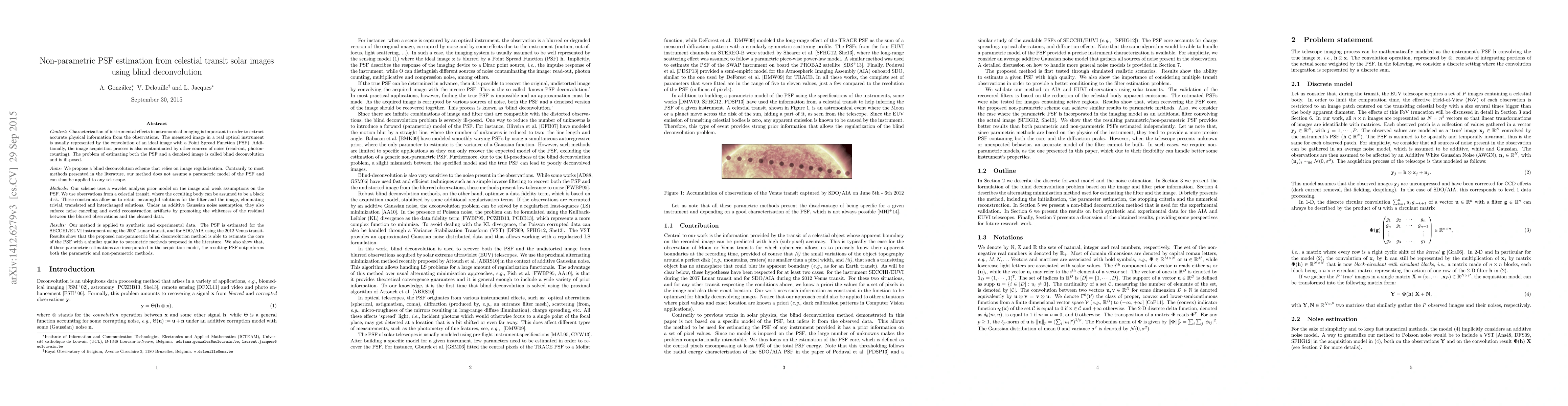 This paper proposes a non-parametric blind deconvolution method for estimating the Point Spread Function (PSF) in celestial transit solar images without assuming a parametric model. The method uses wavelet analysis and weak PSF assumptions, and is validated on synthetic and real data from SECCHI/EUVI and SDO/AIA instruments.
