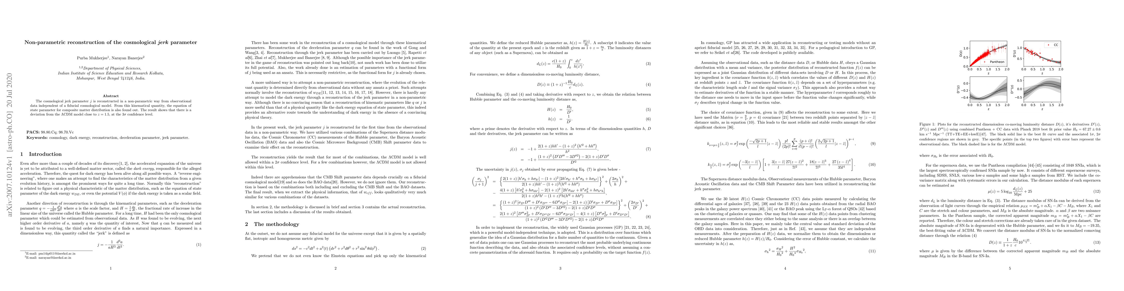 The cosmological jerk parameter $j$ is reconstructed in a non-parametric way from observational data independent of a fiducial cosmological model. From this kinematical quantity, the equation of state parameter for composite matter distribution is also found out. The result shows that there is a deviation from the $\Lambda$CDM model close to $z=1.5$, at the $3\sigma$ confidence level.