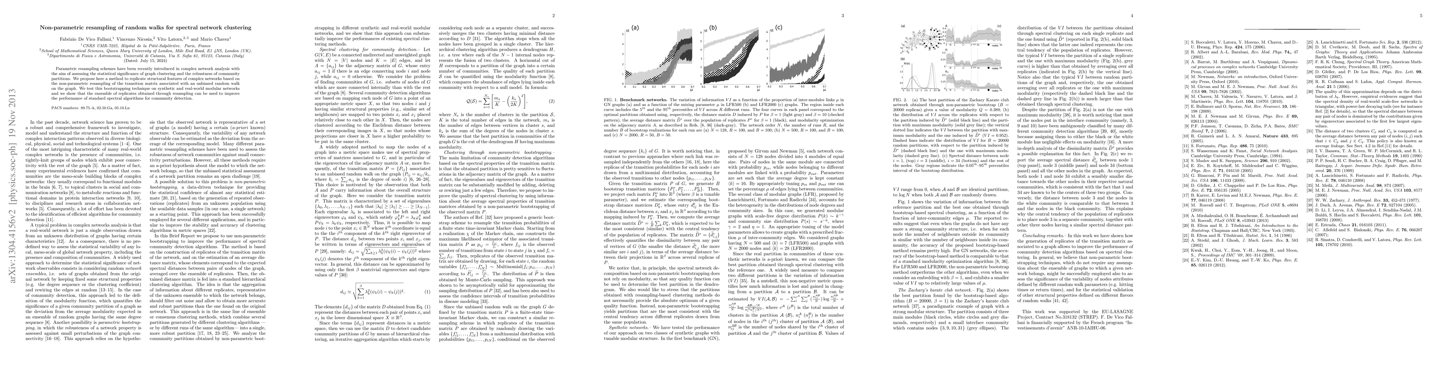 This paper proposes a non-parametric resampling method based on random walks to replicate structural features of complex networks. The technique improves the performance of spectral clustering algorithms for community detection, as demonstrated on both synthetic and real-world modular networks.