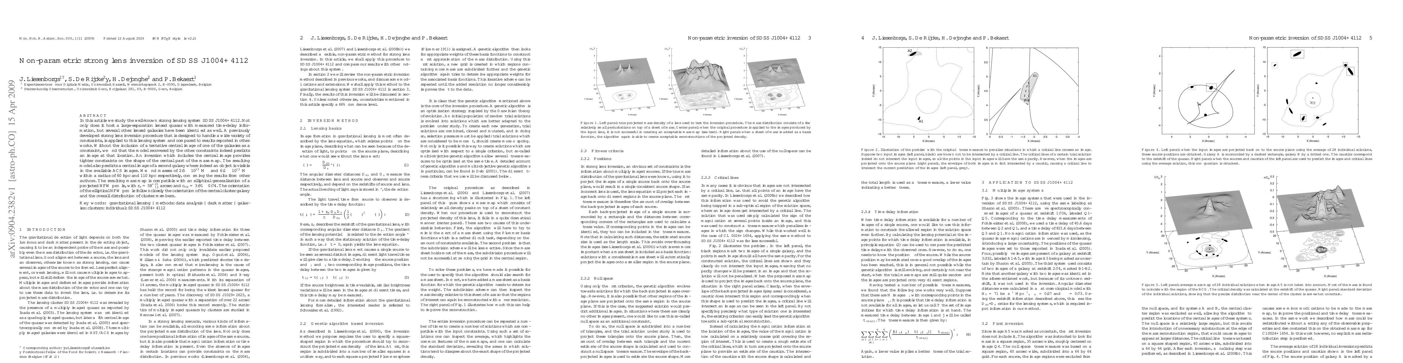 In this article we study the well-known strong lensing system SDSS J1004+4112. Not only does it host a large-separation lensed quasar with measured time-delay information, but several other lensed galaxies have been identified as well. A previously developed strong lens inversion procedure that is designed to handle a wide variety of constraints, is applied to this lensing system and compared to results reported in other works. Without the inclusion of a tentative central image of one of the galaxies as a constraint, we find that the model recovered by the other constraints indeed predicts an image at that location. An inversion which includes the central image provides tighter constraints on the shape of the central part of the mass map. The resulting model also predicts a central image of a second galaxy where indeed an object is visible in the available ACS images. We find masses of 2.5x10^13 M_O and 6.1x10^13 M_O within a radius of 60 kpc and 110 kpc respectively, confirming the results from other authors. The resulting mass map is compatible with an elliptical generalization of a projected NFW profile, with r_s = 58_{-13}^{+21} arcsec and c_vir = 3.91 +/- 0.74. The orientation of the elliptical NFW profile follows closely the orientation of the central cluster galaxy and the overall distribution of cluster members.