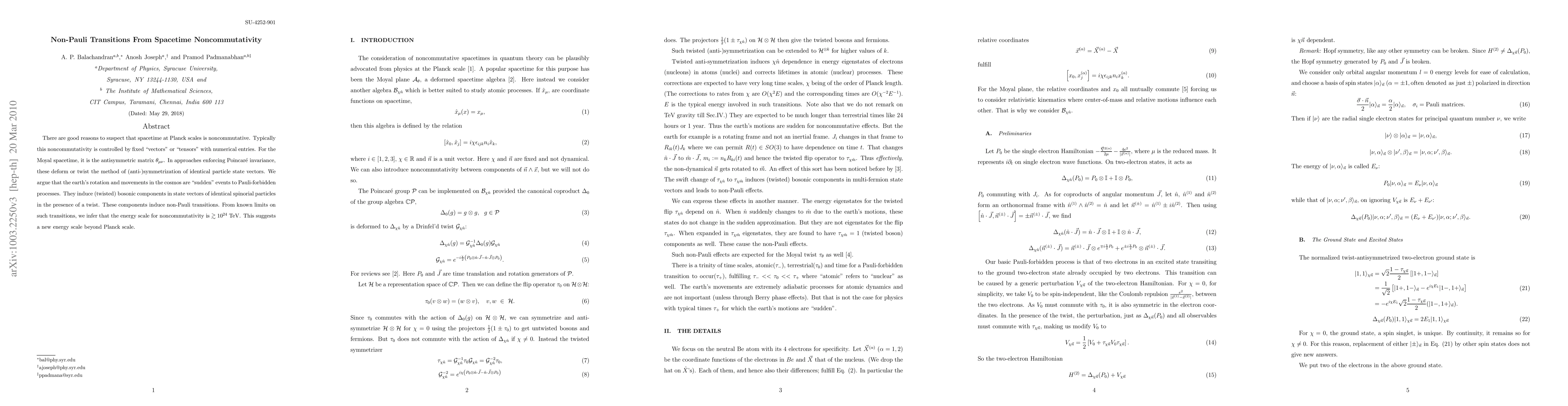 There are good reasons to suspect that spacetime at Planck scales is noncommutative. Typically this noncommutativity is controlled by fixed "vectors" or "tensors" with numerical entries. For the Moyal spacetime, it is the antisymmetric matrix $\theta_{\mu\nu}$. In approaches enforcing Poincar\'e invariance, these deform or twist the method of (anti-)symmetrization of identical particle state vectors. We argue that the earth's rotation and movements in the cosmos are "sudden" events to Pauli-forbidden processes. They induce (twisted) bosonic components in state vectors of identical spinorial particles in the presence of a twist. These components induce non-Pauli transitions. From known limits on such transitions, we infer that the energy scale for noncommutativity is $\gtrsim 10^{24}\textrm{TeV}$. This suggests a new energy scale beyond Planck scale.