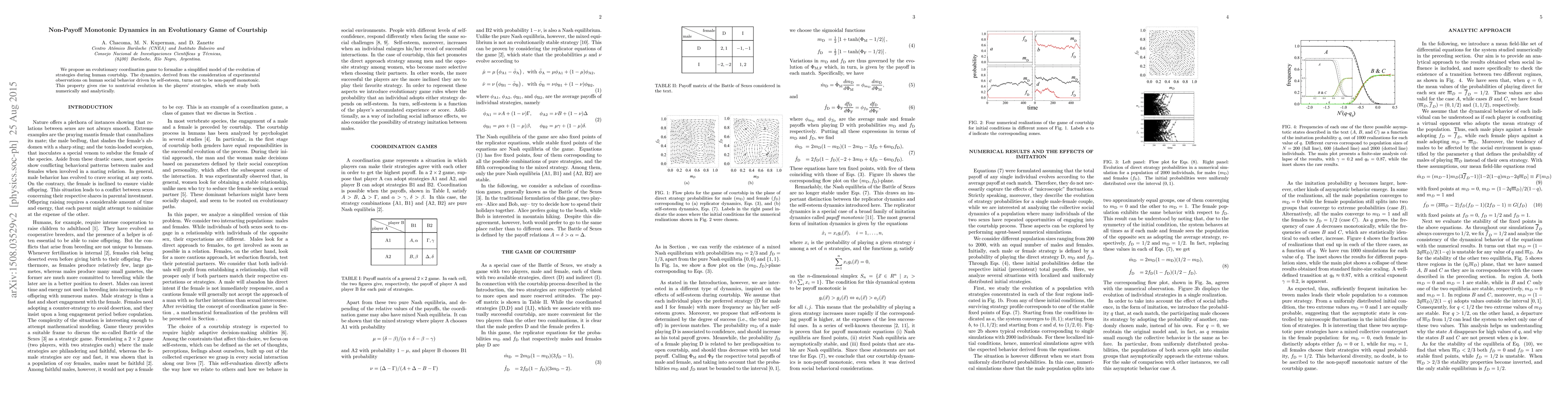 This paper models human courtship as an evolutionary game where strategies evolve based on self-esteem observations. The game's dynamics are non-payoff monotonic, leading to complex strategy evolution, studied through both numerical and analytical methods.