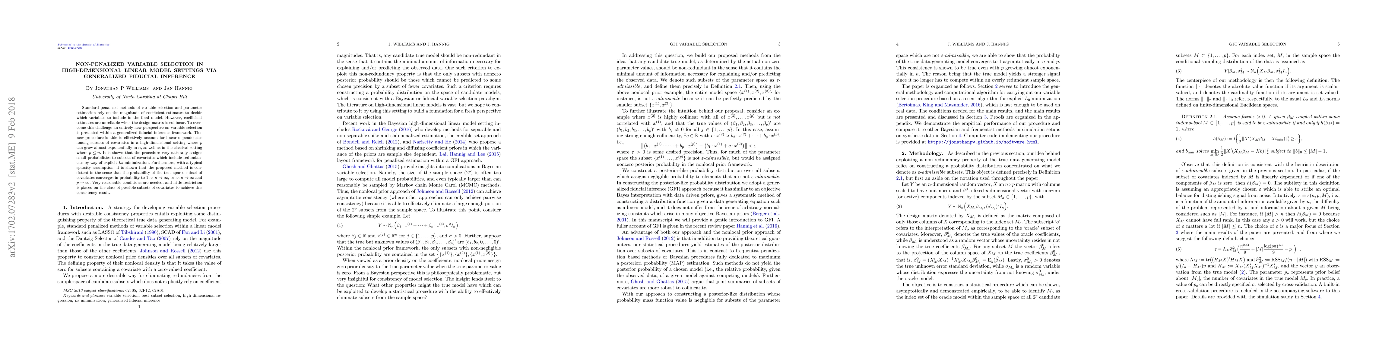 This paper proposes a novel variable selection method using generalized fiducial inference to address collinearity issues in high-dimensional linear models. Unlike penalized methods, it effectively handles linear dependencies among covariates and demonstrates consistency in identifying true sparse subsets under reasonable conditions.