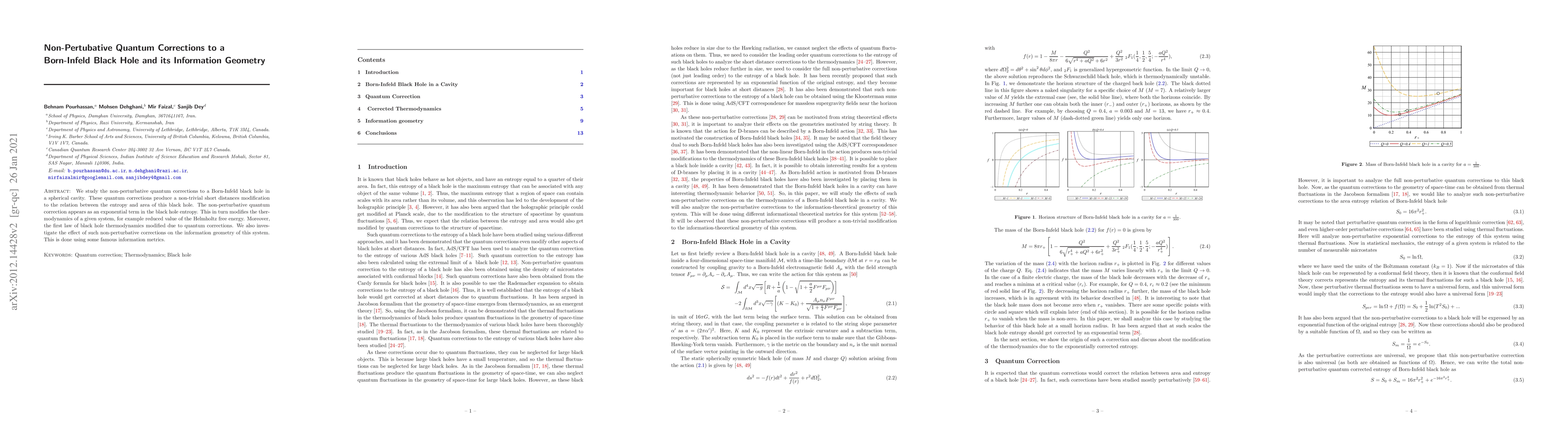 We study the non-perturbative quantum corrections to a Born-Infeld black hole in a spherical cavity. These quantum corrections produce a non-trivial short distances modification to the relation between the entropy and area of this black hole. The non-perturbative quantum correction appears as an exponential term in the black hole entropy. This in turn modifies the thermodynamics of a given system, for example reduced value of the Helmholtz free energy. Moreover, the first law of black hole thermodynamics modified due to quantum corrections. We also investigate the effect of such non-perturbative corrections on the information geometry of this system. This is done using some famous information metrics.