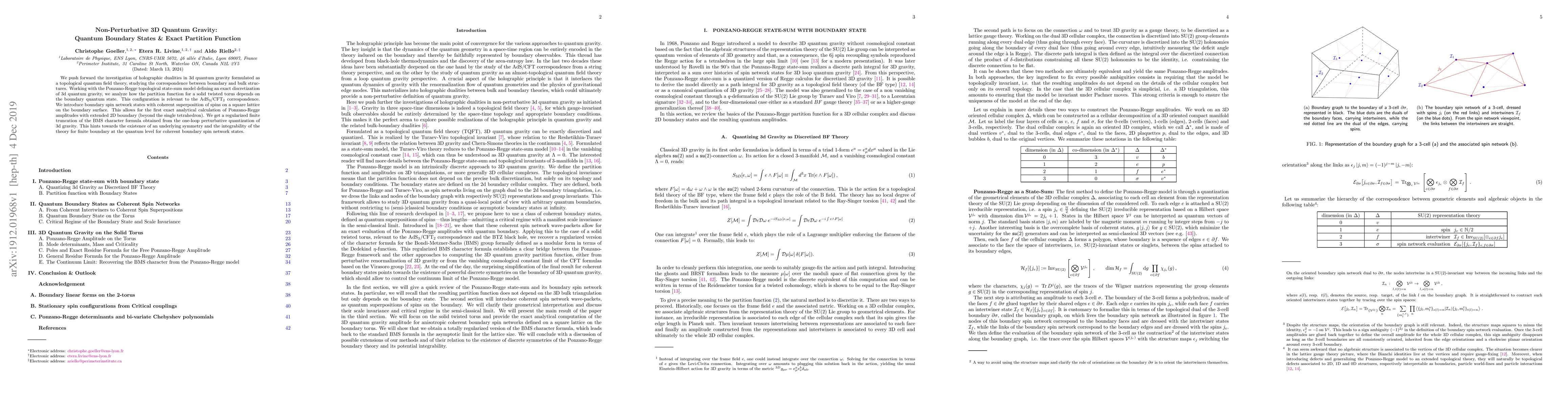 We push forward the investigation of holographic dualities in 3D quantum gravity formulated as a topological quantum field theory, studying the correspondence between boundary and bulk structures. Working with the Ponzano-Regge topological state-sum model defining an exact discretization of 3d quantum gravity, we analyze how the partition function for a solid twisted torus depends on the boundary quantum state. This configuration is relevant to the AdS${}_{3}$/CFT${}_{2}$ correspondence. We introduce boundary spin network states with coherent superposition of spins on a square lattice on the boundary surface. This allows for the first exact analytical calculation of Ponzano-Regge amplitudes with extended 2D boundary (beyond the single tetrahedron). We get a regularized finite truncation of the BMS character formula obtained from the one-loop perturbative quantization of 3D gravity. This hints towards the existence of an underlying symmetry and the integrability of the theory for finite boundary at the quantum level for coherent boundary spin network states.