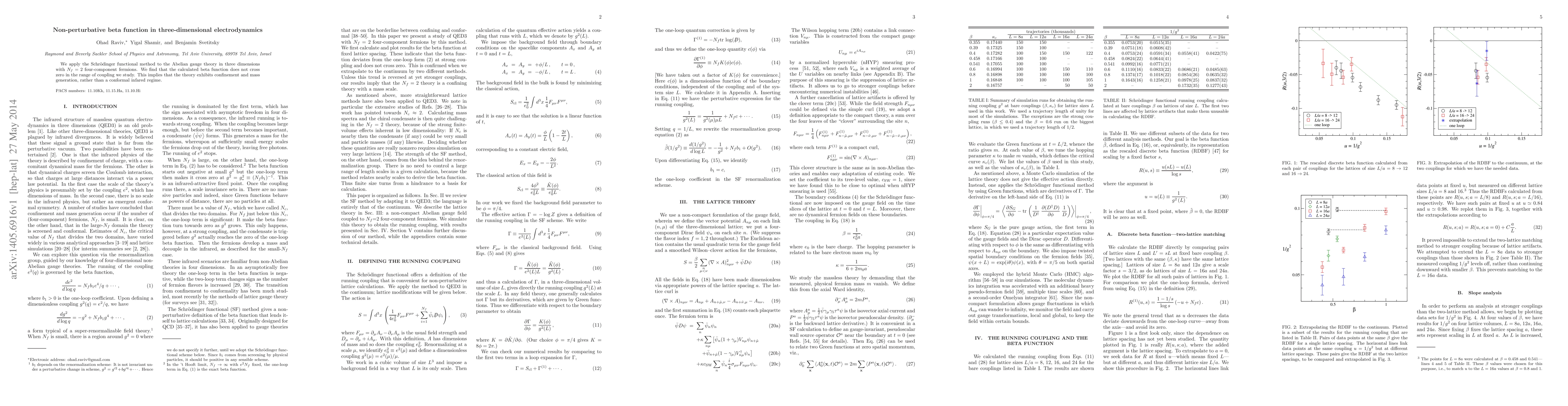 We apply the Schrodinger functional method to the Abelian gauge theory in three dimensions with Nf=2 four-component fermions. We find that the calculated beta function does not cross zero in the range of coupling we study. This implies that the theory exhibits confinement and mass generation, rather than a conformal infared regime.