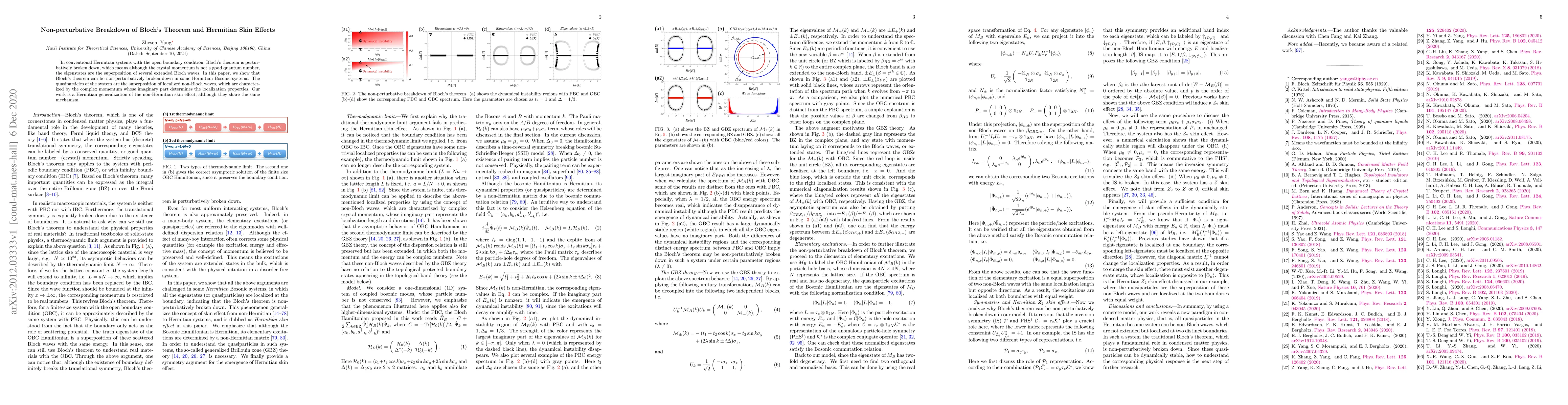 Researchers found that Bloch's theorem can break down in certain Hermitian Bosonic systems, leading to eigenstates composed of localized non-Bloch waves with complex momentum. This phenomenon shares the same mechanism as the non-Hermitian skin effect.