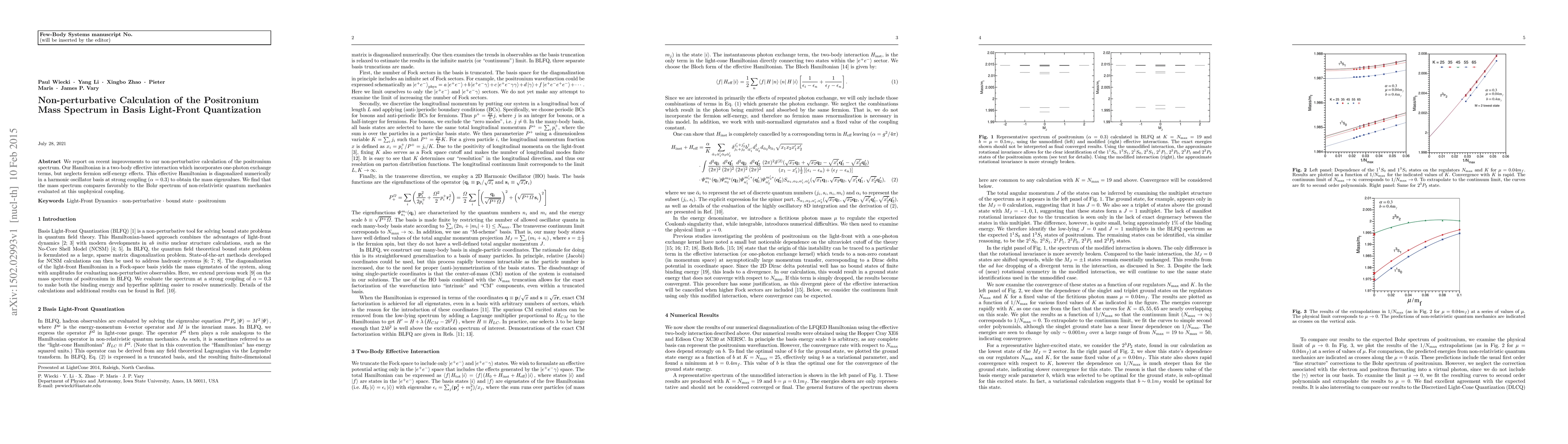 We report on recent improvements to our non-perturbative calculation of the positronium spectrum. Our Hamiltonian is a two-body effective interaction which incorporates one-photon exchange terms, but neglects fermion self-energy effects. This effective Hamiltonian is diagonalized numerically in a harmonic oscillator basis at strong coupling ($\alpha=0.3$) to obtain the mass eigenvalues. We find that the mass spectrum compares favorably to the Bohr spectrum of non-relativistic quantum mechanics evaluated at this unphysical coupling.