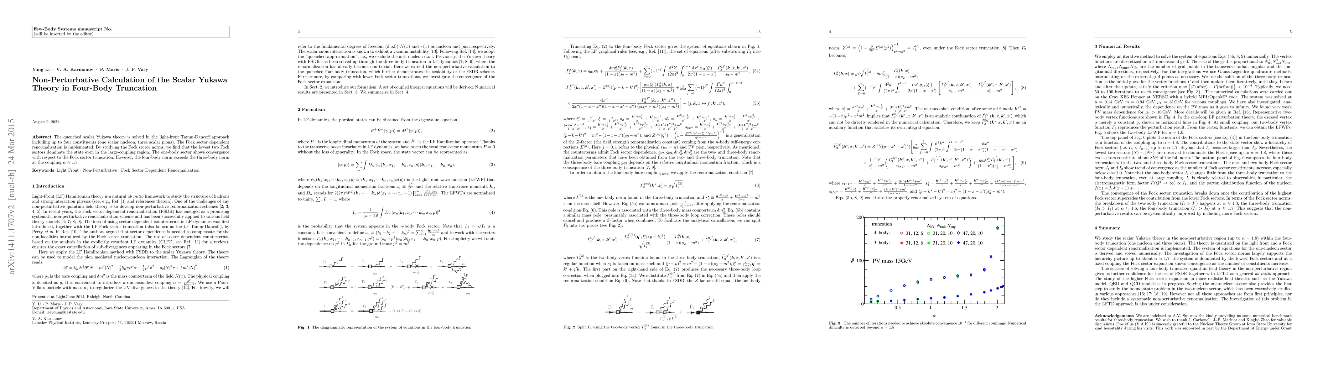 This paper presents a non-perturbative solution of the quenched scalar Yukawa theory using the light-front Tamm-Dancoff approach with up to four constituents, revealing that the lowest two Fock sectors dominate the state, especially in the large-coupling region, while the four-body norm surpasses the three-body norm at a coupling of $\alpha \approx 1.7$.