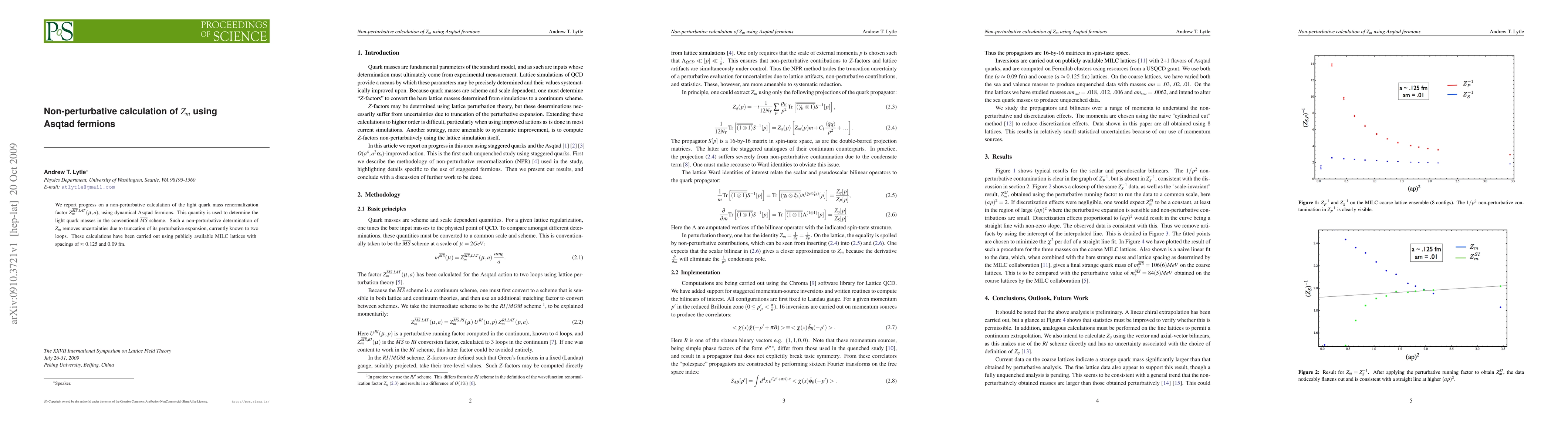 We report progress on a non-perturbative calculation of the light quark mass renormalization factor Z_m, using dynamical Asqtad fermions. This quantity is used to determine the light quark masses in the conventional MS-bar scheme. Such a non-perturbative determination of Z_m removes uncertainties due to truncation of its perturbative expansion, currently known to two loops. These calculations have been carried out using publicly available MILC lattices with spacings of approximately 0.125 and 0.09 fm.