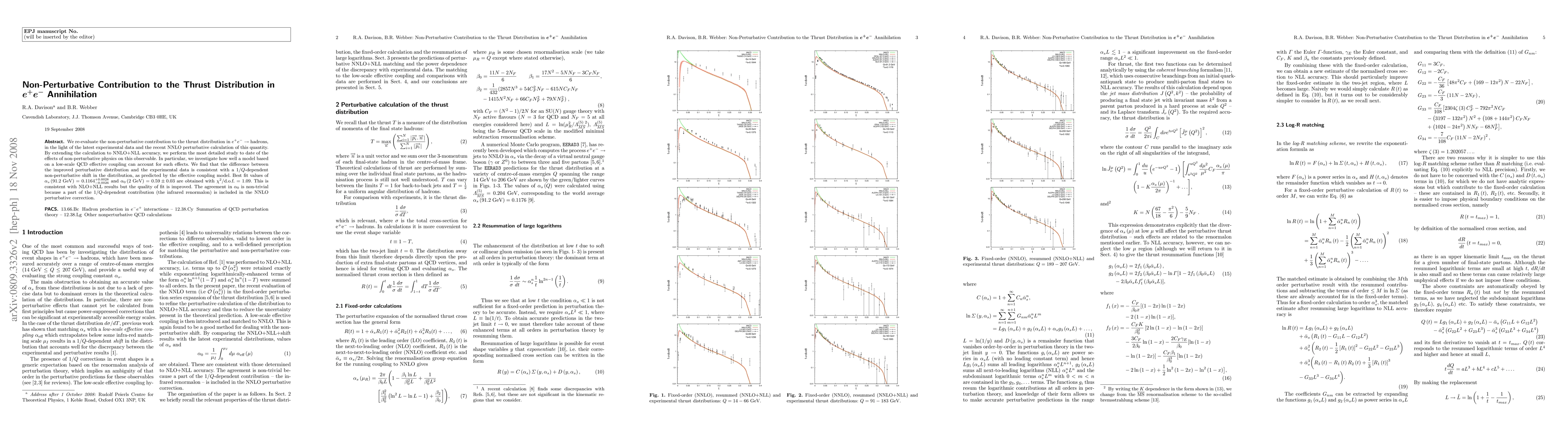 Researchers re-evaluate non-perturbative contribution to thrust distribution in e+e- annihilation, finding a $1/Q$-dependent shift consistent with a low-scale QCD effective coupling model.