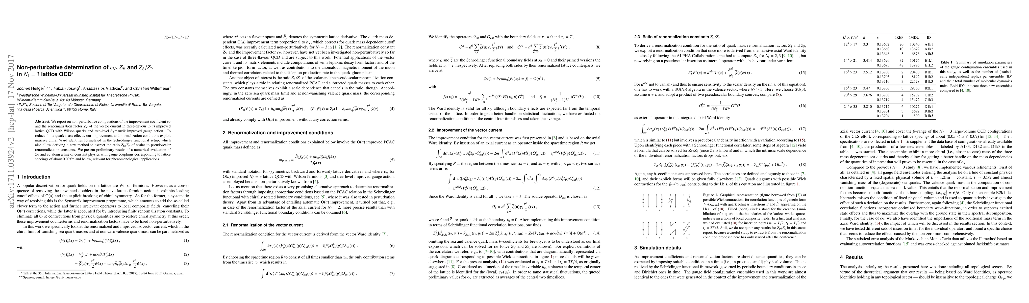 Researchers computed non-perturbative values for vector current renormalization constants and improvement coefficient in lattice QCD with 3-flavour quarks, using a new method that reduces finite mass effects.