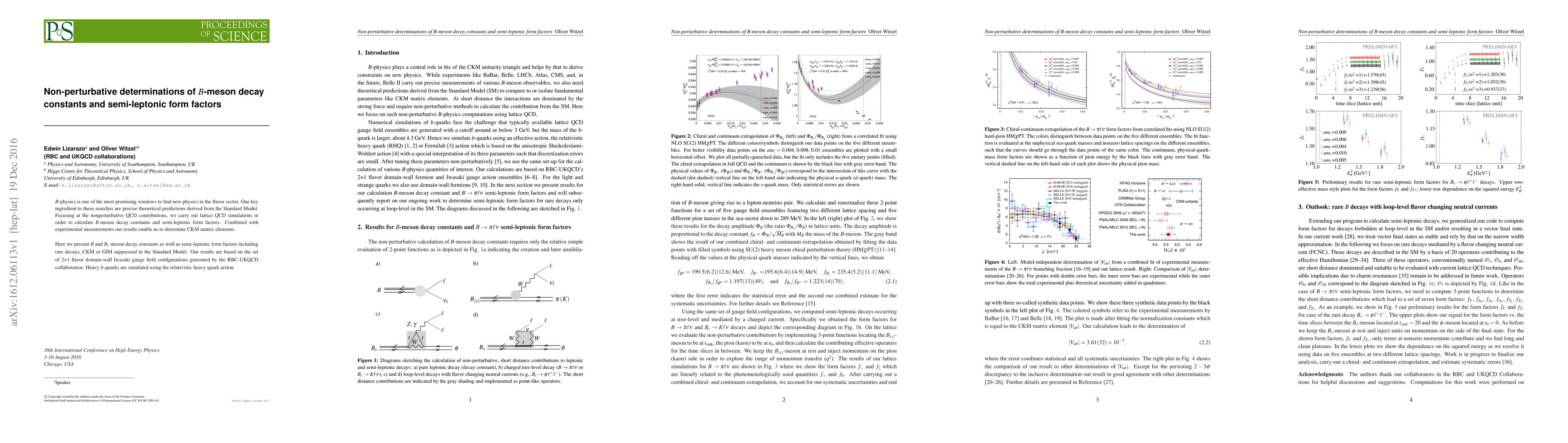 This paper uses lattice QCD simulations to determine non-perturbative contributions to $B$-meson decay constants and semi-leptonic form factors, crucial for precise Standard Model predictions and searches for new physics. The results, based on 2+1 flavor domain-wall configurations, enable determination of CKM matrix elements and include rare decay processes.