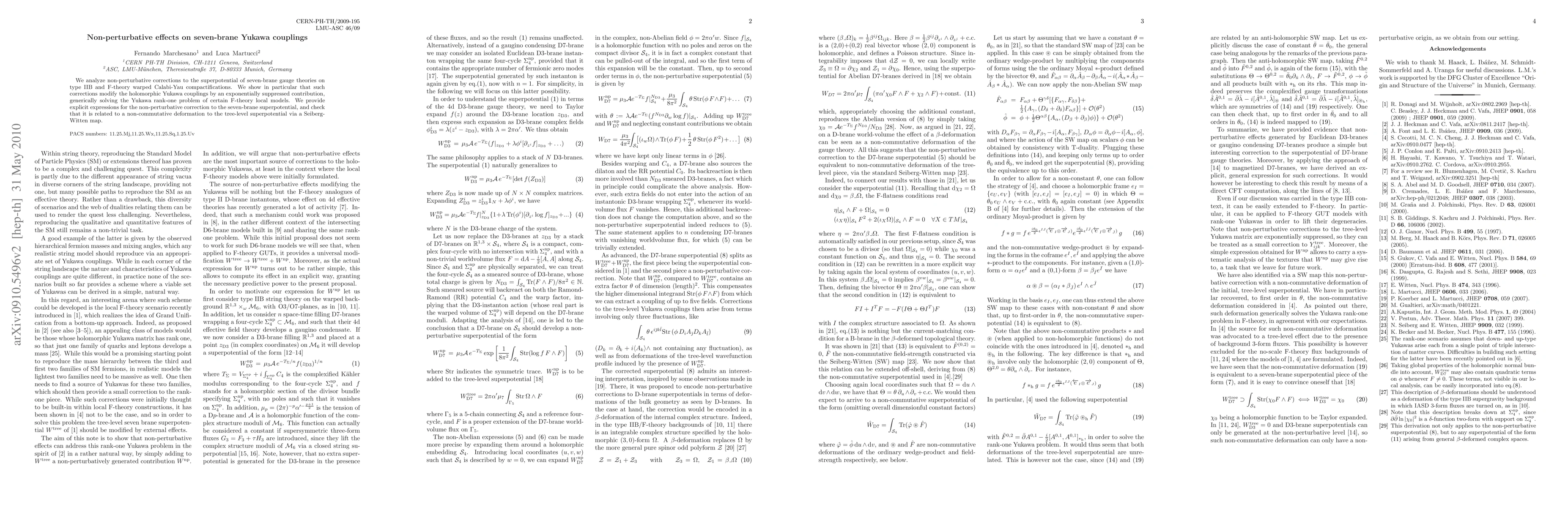 We analyze non-perturbative corrections to the superpotential of seven-brane gauge theories on type IIB and F-theory warped Calabi-Yau compactifications. We show in particular that such corrections modify the holomorphic Yukawa couplings by an exponentially suppressed contribution, generically solving the Yukawa rank-one problem present in F-theory local models. We provide explicit expressions for the non-perturbative correction to the seven-brane superpotential, and check that it is related to a non-commutative deformation to the tree-level superpotential via the Seiberg-Witten map.