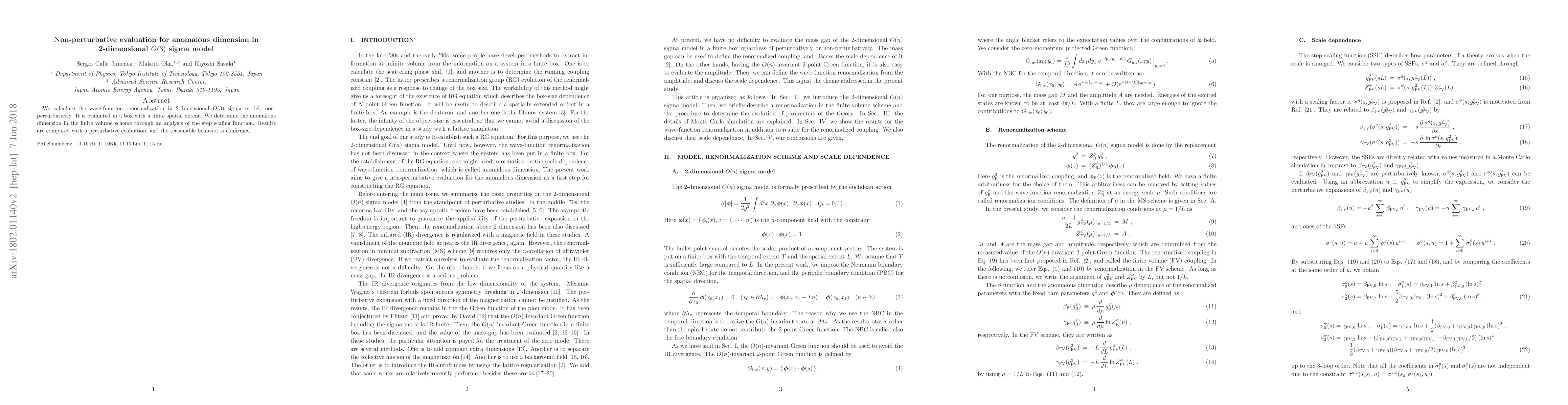 This paper presents a non-perturbative calculation of the wave-function renormalization in the 2-dimensional O(3) sigma model within a finite spatial volume, determining the anomalous dimension via step scaling function analysis. The results are corroborated by comparing them with perturbative evaluations.