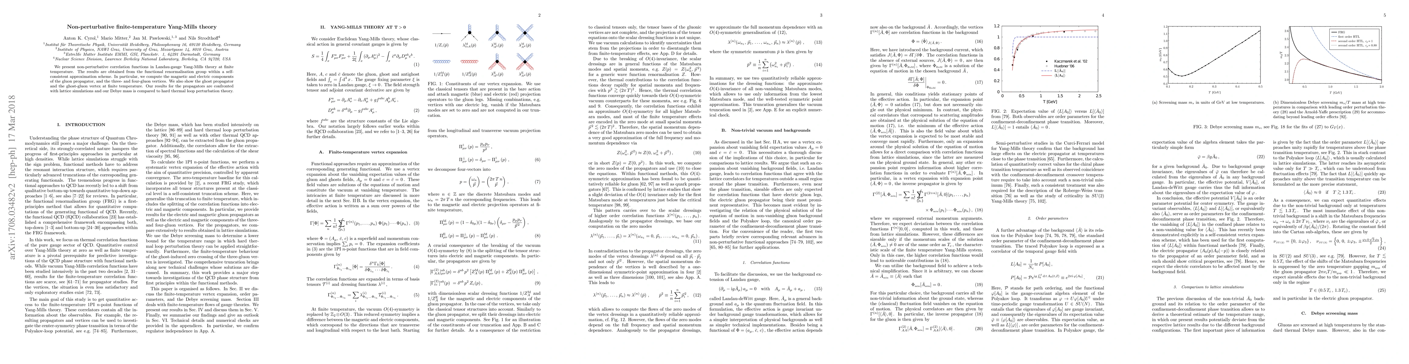 This paper presents non-perturbative correlation functions in finite-temperature Landau-gauge Yang-Mills theory derived from the functional renormalisation group, focusing on the gluon and ghost propagators and vertices. Results are compared with lattice simulations and hard thermal loop perturbation theory.