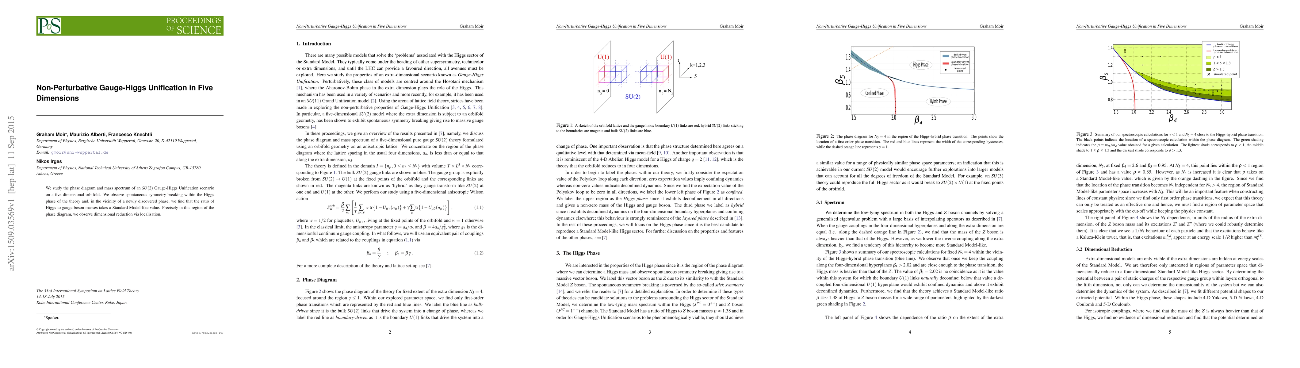We study the phase diagram and mass spectrum of an $SU(2)$ Gauge-Higgs Unification scenario on a five-dimensional orbifold.We observe spontaneous symmetry breaking within the Higgs phase of the theory and, in the vicinity of a newly discovered phase, we find that the ratio of Higgs to gauge boson masses takes a Standard Model-like value. Precisely in this region of the phase diagram, we observe dimensional reduction via localisation.
