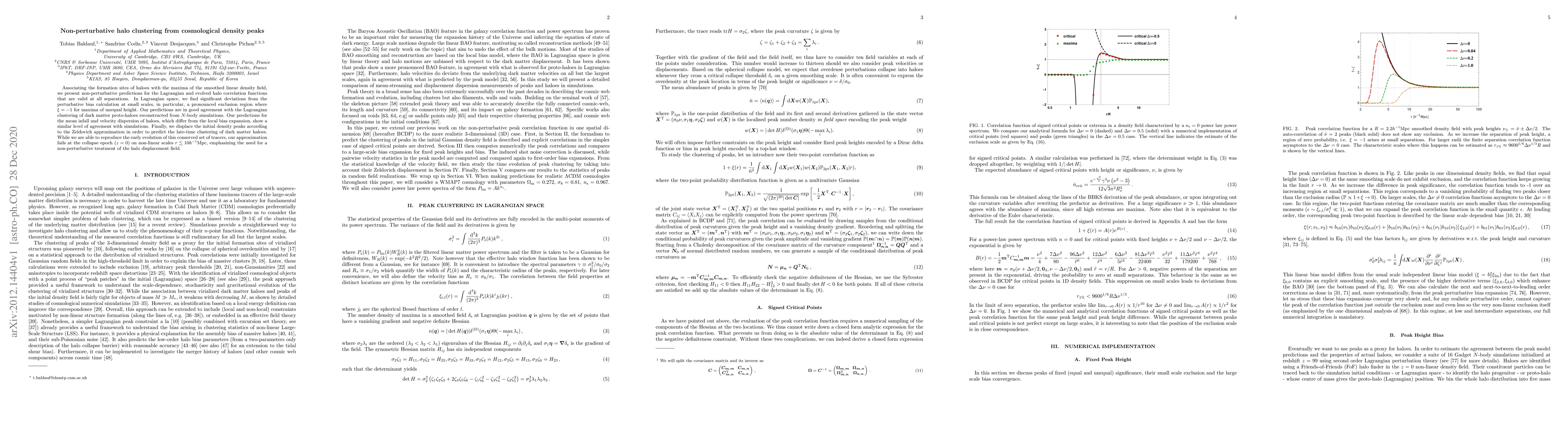 This paper presents non-perturbative predictions for halo clustering from cosmological density peaks, showing significant deviations from perturbative bias calculations at small scales, with good agreement with N-body simulations.