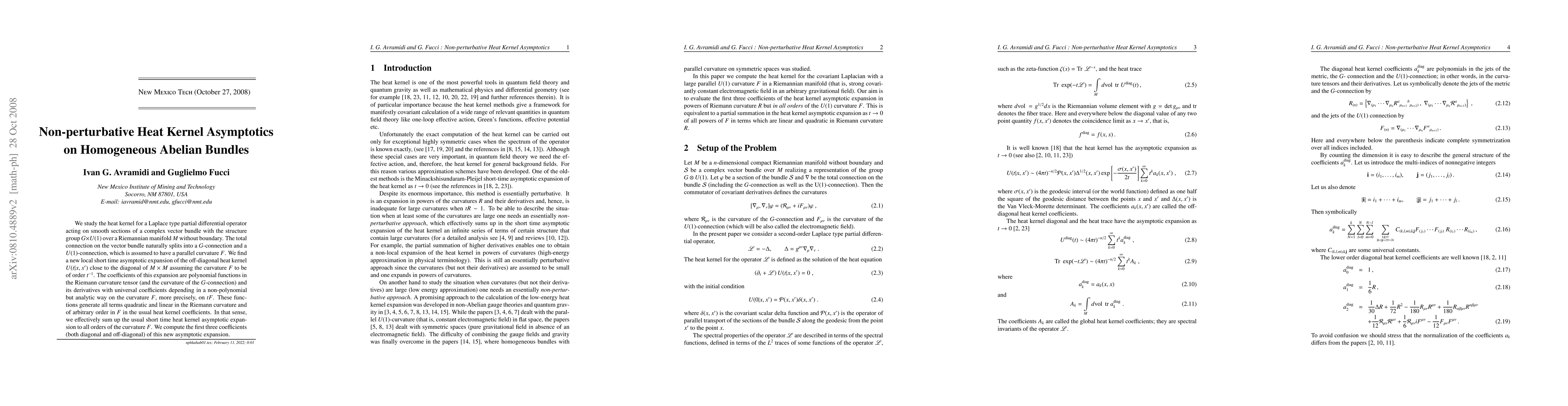 This paper investigates the heat kernel for a Laplace-type operator on complex vector bundles over a Riemannian manifold, deriving a new local short-time asymptotic expansion for the off-diagonal heat kernel. The expansion includes terms quadratic and linear in the Riemann curvature tensor and arbitrary orders in the curvature of a U(1)-connection, summing up the usual short-time asymptotic expansion to all orders.