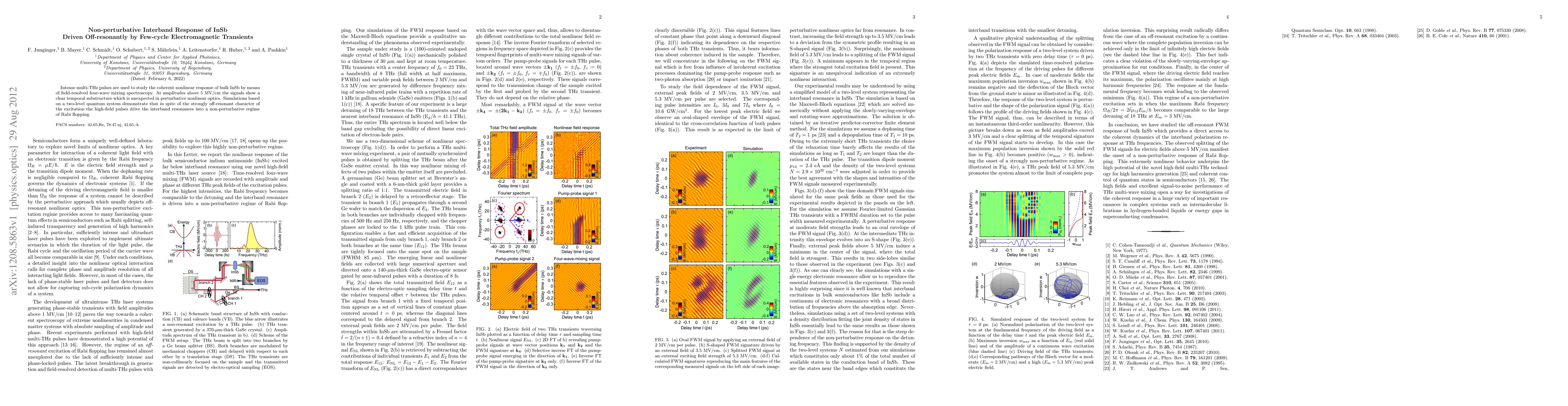 Intense multi-THz pulses are used to study the coherent nonlinear response of bulk InSb by means of field-resolved four-wave mixing spectroscopy. At amplitudes above 5 MV/cm the signals show a clear temporal substructure which is unexpected in perturbative nonlinear optics. Simulations based on a two-level quantum system demonstrate that in spite of the strongly off-resonant character of the excitation the high-field pulses drive the interband resonances into a non-perturbative regime of Rabi flopping.