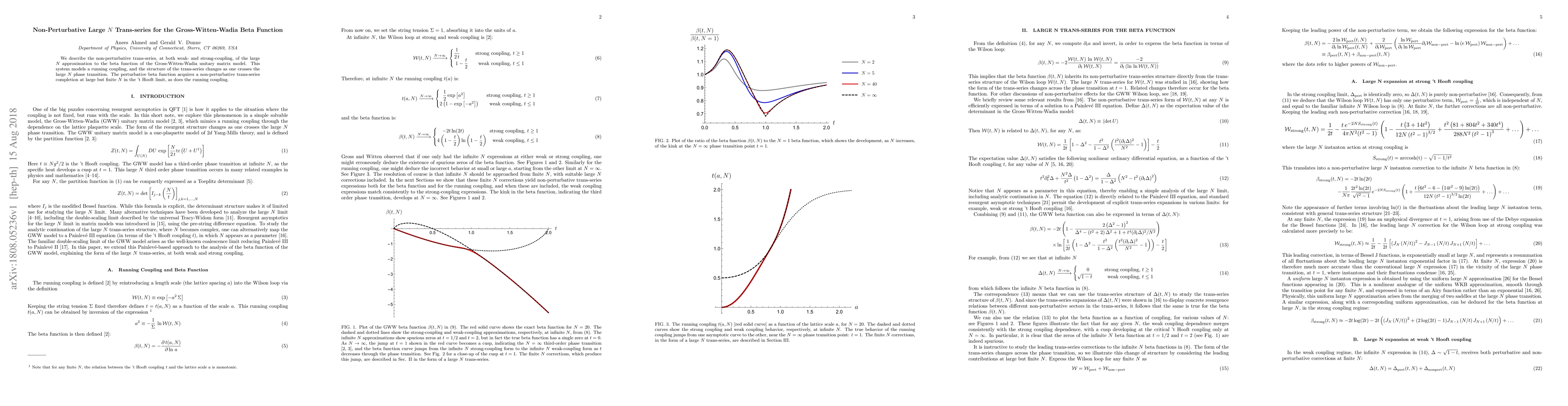 We describe the non-perturbative trans-series, at both weak- and strong-coupling, of the large N approximation to the beta function of the Gross-Witten-Wadia unitary matrix model. This system models a running coupling, and the structure of the trans-series changes as one crosses the large N phase transition. The perturbative beta function acquires a non-perturbative trans-series completion at large but finite $N$ in the 't Hooft limit, as does the running coupling.