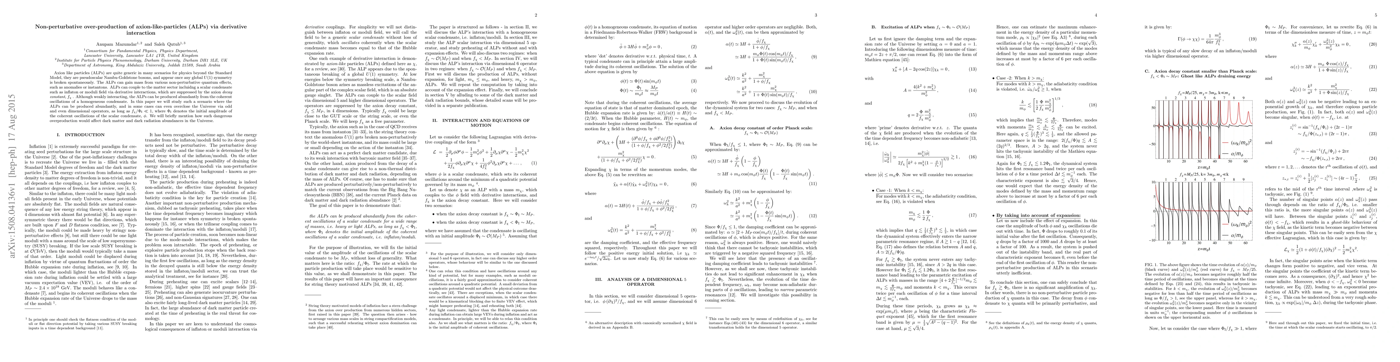 This paper investigates the non-perturbative over-production of axion-like particles (ALPs) through derivative interactions with a scalar condensate, potentially leading to overclosure of the Universe. It explores scenarios where ALPs can dominate dark matter and dark radiation abundances if the axion decay constant is much smaller than the initial amplitude of the condensate's oscillations.