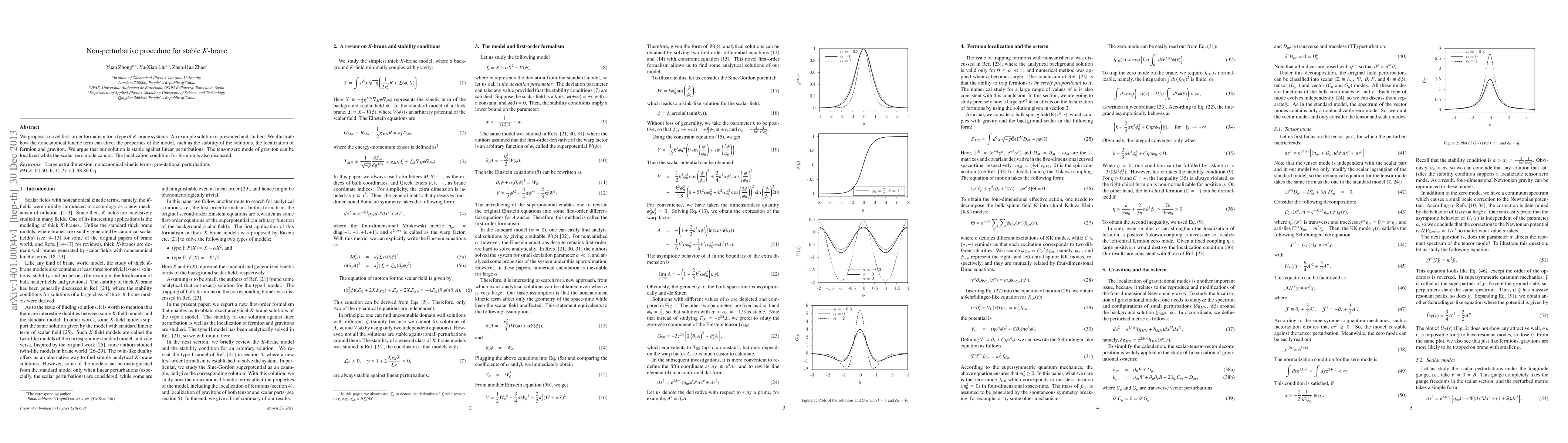We propose a novel first-order formalism for a type of $K$-brane systems. An example solution is presented and studied. We illustrate how the noncanonical kinetic term can affect the properties of the model, such as the stability of the solutions, the localization of fermion and graviton. We argue that our solution is stable against linear perturbations. The tensor zero mode of graviton can be localized while the scalar zero mode cannot. The localization condition for fermion is also discussed.