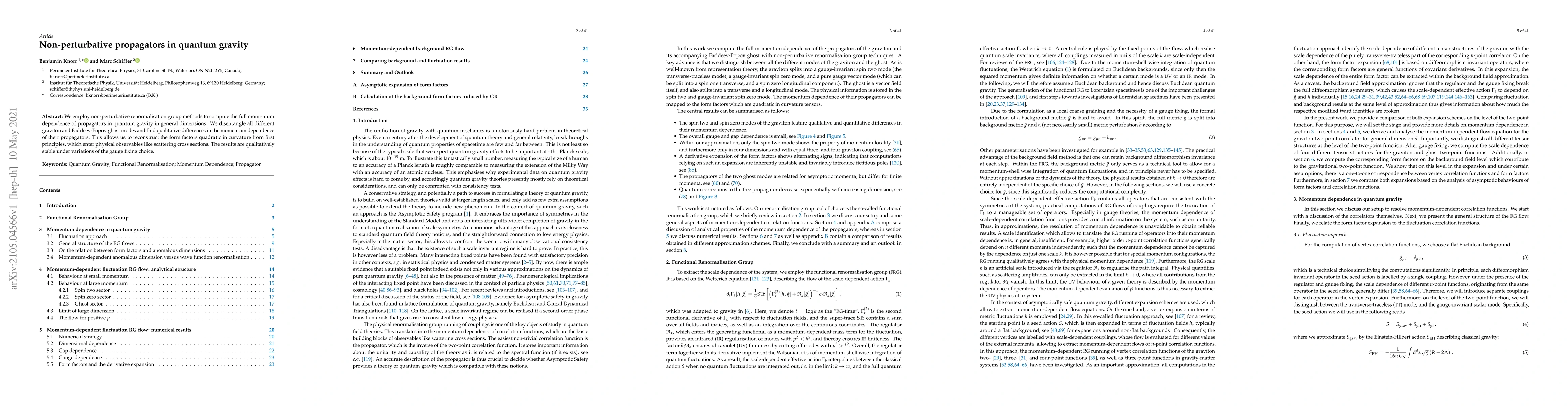 This paper uses non-perturbative renormalization group techniques to compute the momentum dependence of propagators in quantum gravity, revealing distinct behaviors for graviton and ghost modes. The findings enable the reconstruction of curvature-quadratic form factors, crucial for physical observables such as scattering cross sections, with results remaining stable under gauge fixing variations.