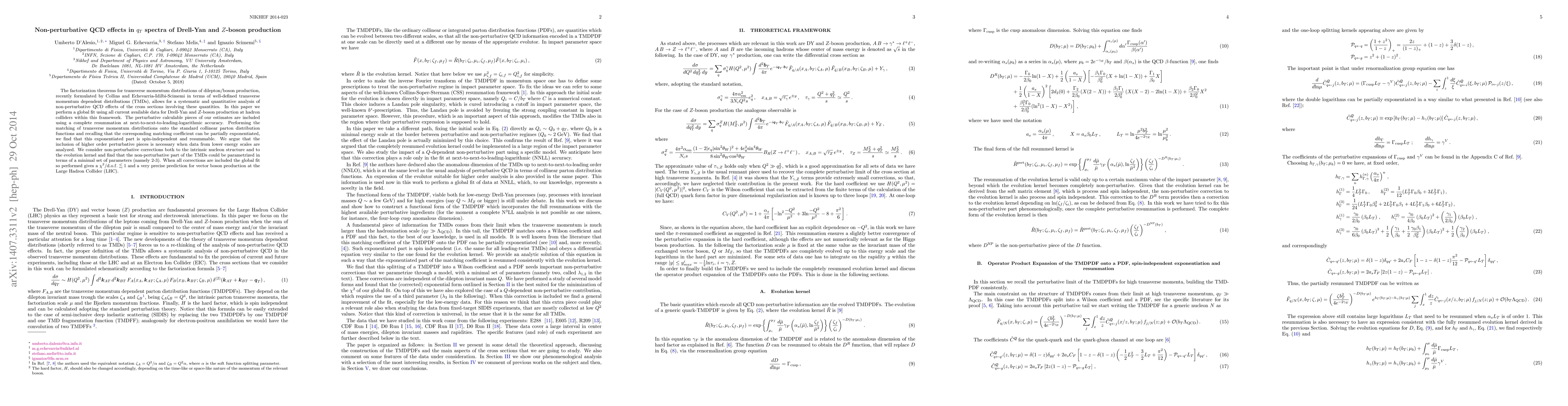 The factorization theorems for transverse momentum distributions of dilepton/boson production, recently formulated by Collins and Echevarria-Idilbi-Scimemi in terms of well-defined transverse momentum dependent distributions (TMDs), allows for a systematic and quantitative analysis of non-perturbative QCD effects of the cross sections involving these quantities. In this paper we perform a global fit using all current available data for Drell-Yan and $Z$-boson production at hadron colliders within this framework. The perturbative calculable pieces of our estimates are included using a complete resummation at next-to-next-to-leading-logarithmic accuracy. Performing the matching of transverse momentum distributions onto the standard collinear parton distribution functions and recalling that the corresponding matching coefficient can be partially exponentiated, we find that this exponentiated part is spin-independent and resummable. We argue that the inclusion of higher order perturbative pieces is necessary when data from lower energy scales are analyzed. We consider non-perturbative corrections both to the intrinsic nucleon structure and to the evolution kernel and find that the non-perturbative part of the TMDs could be parametrized in terms of a minimal set of parameters (namely 2-3). When all corrections are included the global fit so performed gives a $\chi^2/{\rm d.o.f.} \lesssim 1$ and a very precise prediction for vector boson production at the Large Hadron Collider (LHC).