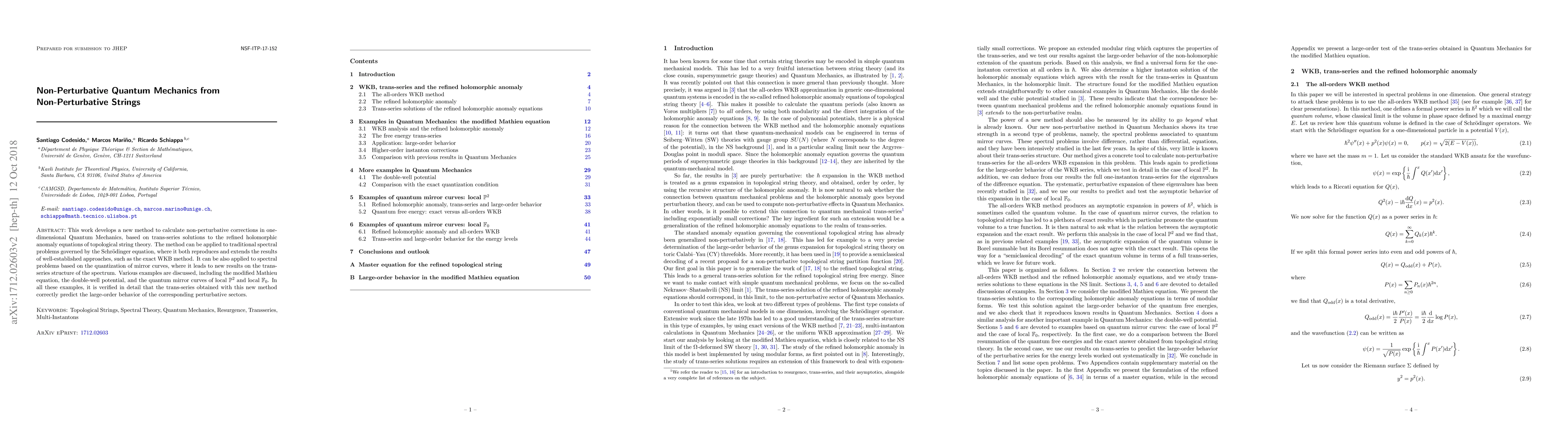 This paper introduces a novel method for non-perturbative quantum mechanics calculations using trans-series solutions from topological string theory, extending traditional spectral problems and predicting the large-order behavior of perturbative sectors. The method is demonstrated through various examples including the modified Mathieu equation and quantum mirror curves.