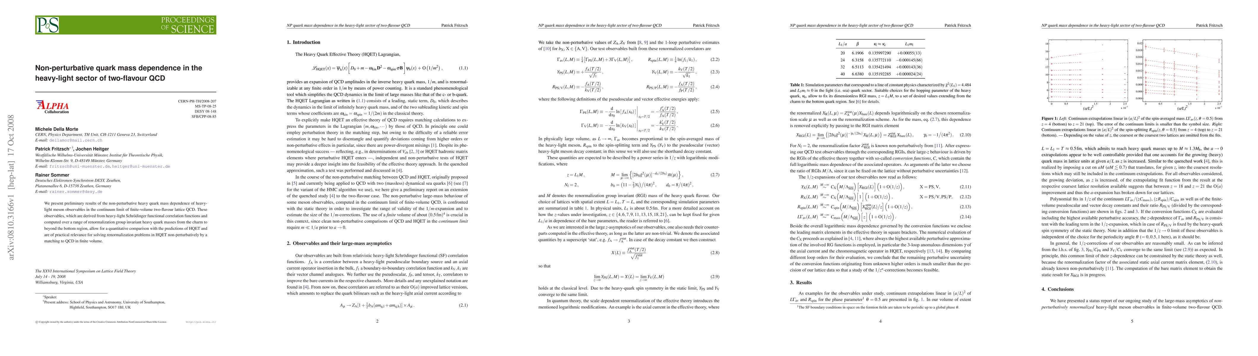 We present preliminary results of the non-perturbative heavy quark mass dependence of heavy-light meson observables in the continuum limit of finite-volume two-flavour lattice QCD. These observables, which are derived from heavy-light Schroedinger functional correlation functions and computed over a range of renormalization group invariant heavy quark masses from the charm to beyond the bottom region, allow for a quantitative comparison with the predictions of HQET and are of practical relevance for solving renormalization problems in HQET non-perturbatively by a matching to QCD in finite volume.