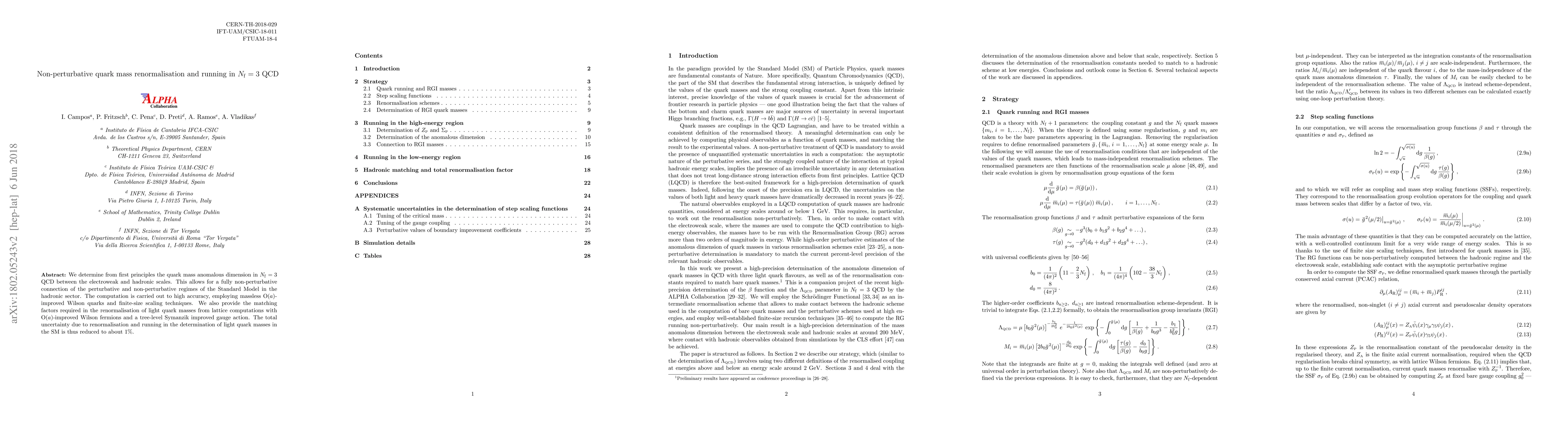 This research determines the quark mass anomalous dimension in N_f=3 QCD using high-accuracy non-perturbative methods, enabling a precise connection between perturbative and non-perturbative regimes in the Standard Model. The study reduces the total uncertainty in light quark mass determination to approximately 1%.